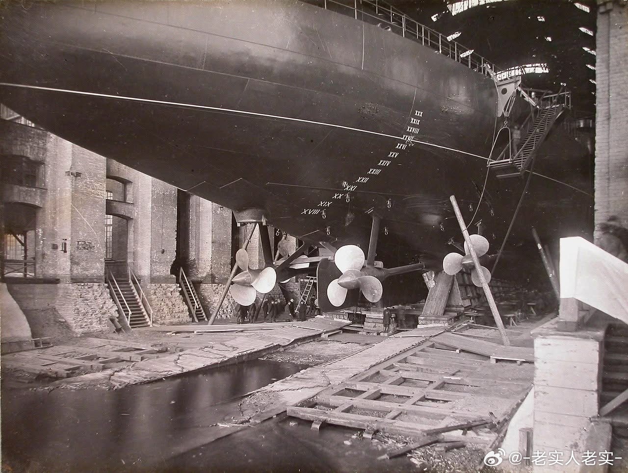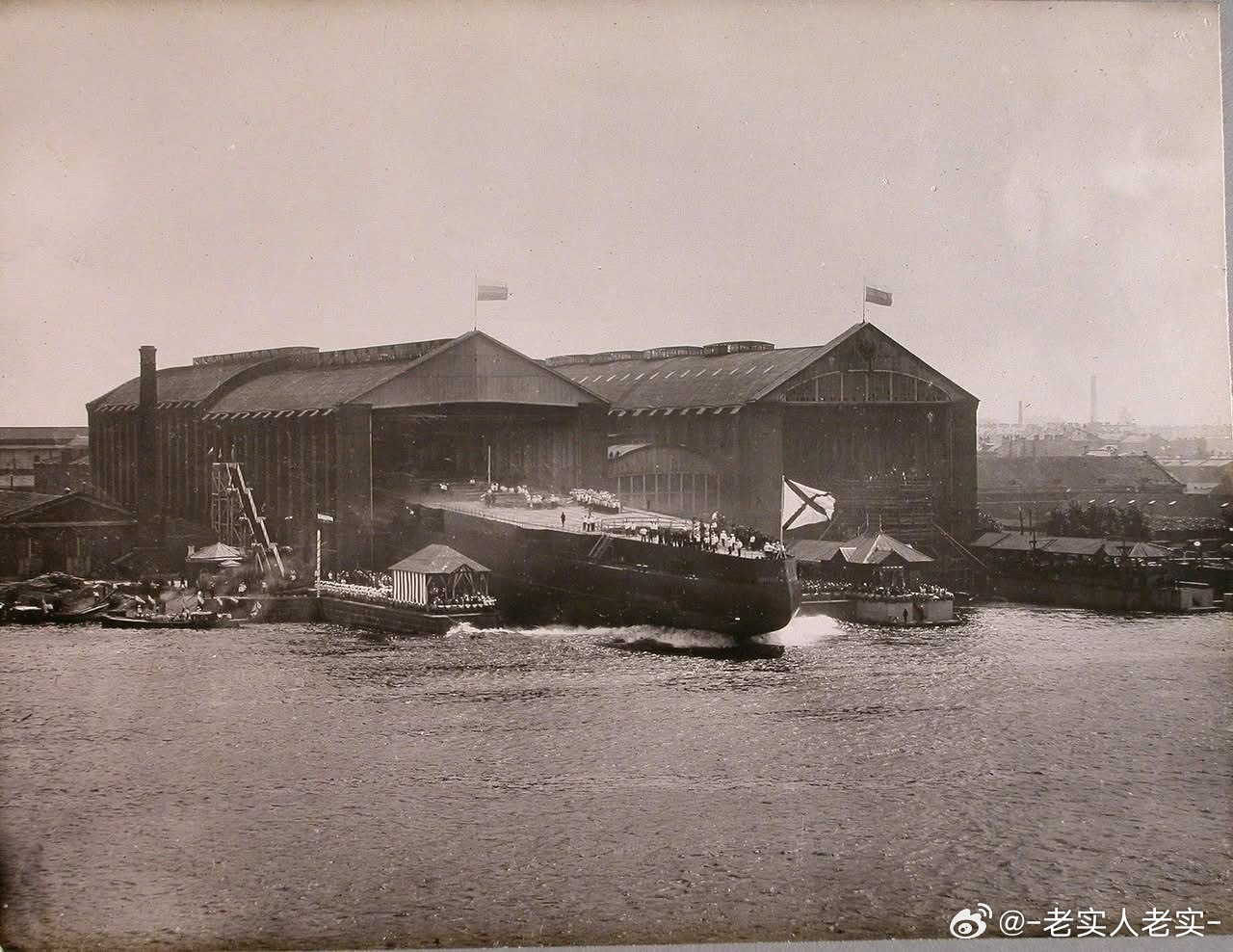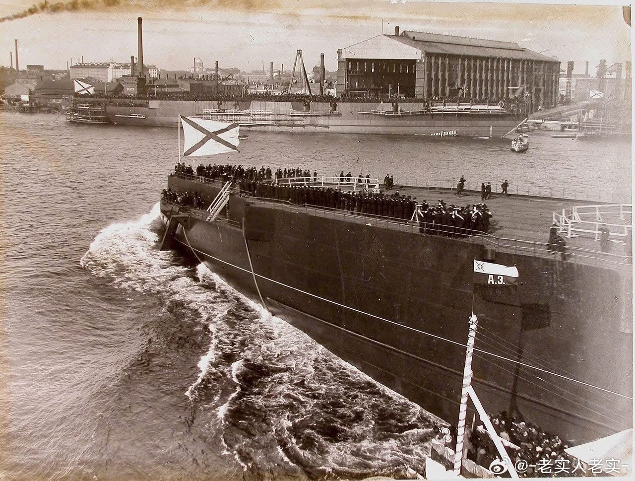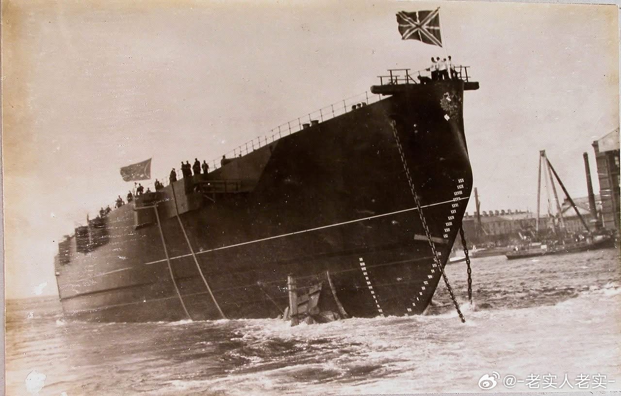 沙俄海军塞瓦斯托波尔号无畏舰下水、舾装及试航的照片,可见巨大的舰体下水,三联装3
