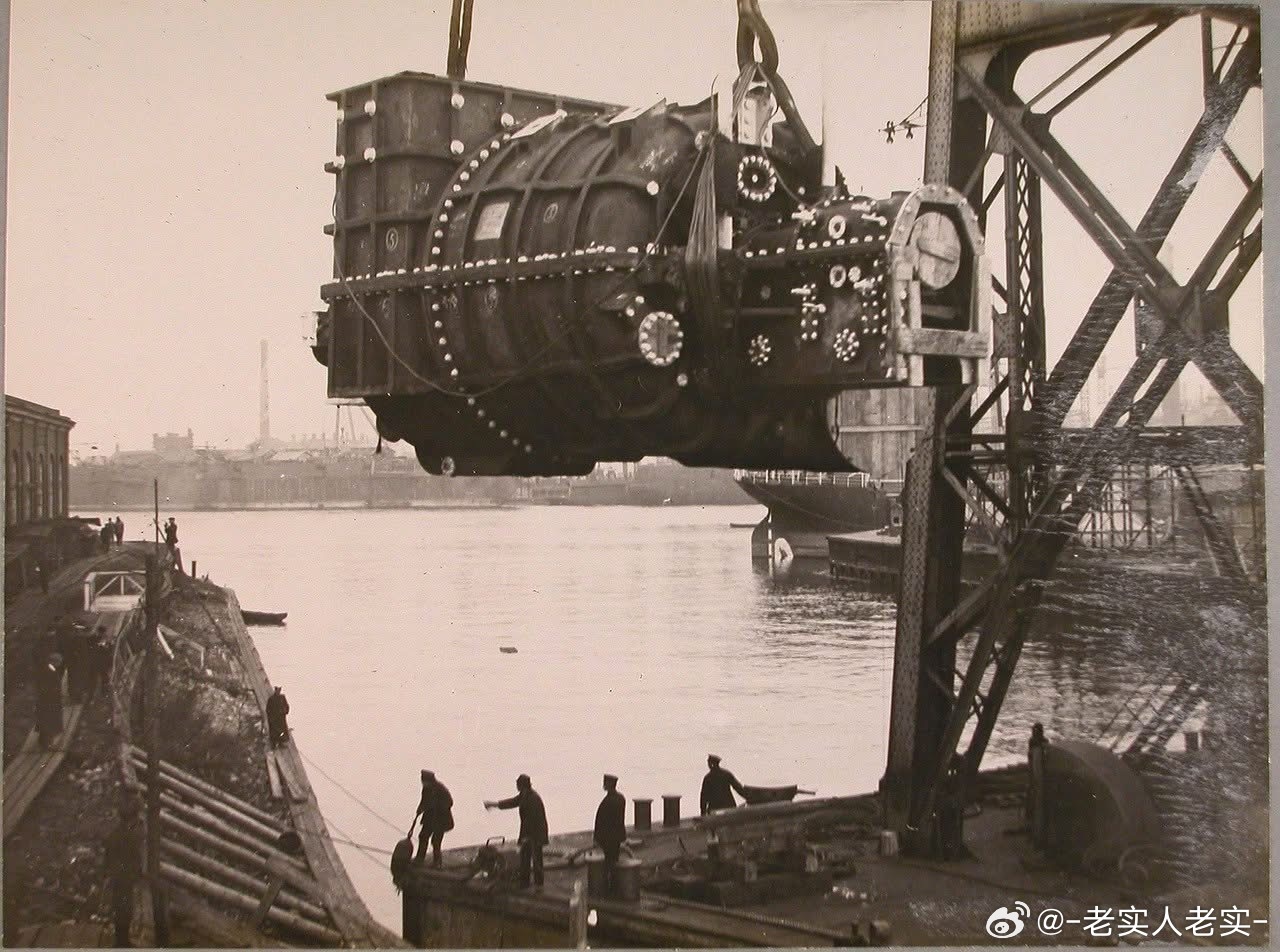 沙俄海军塞瓦斯托波尔号无畏舰下水、舾装及试航的照片,可见巨大的舰体下水,三联装305mm主炮组装测试,主炮吊装,锅炉和发电机吊装,以及上层建筑和出海试航的细节。四座三联装305mm主炮加上120mm炮廓副炮和76mm反鱼雷艇速射炮群还是很威武很上镜的
