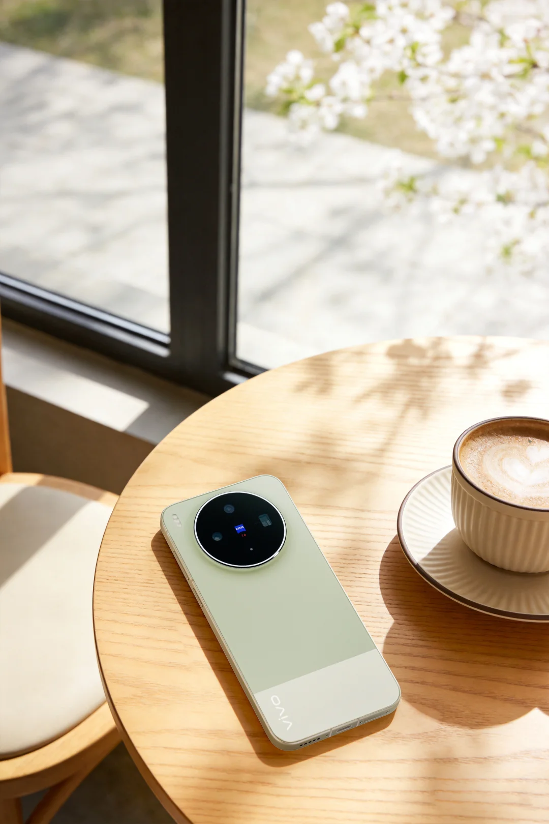 这种明亮、纯净、低饱和度的色调,给人一种清新、希望与安全感。能够缓和心理压力,使人感到放松和平静。圆形镜头模组里的蔡司小 V 标,又给我一种专业、稳定、信任与纯净的视觉情绪。