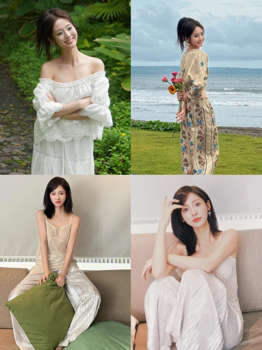 邢菲近期巴厘岛度假穿搭合集,几组裙装look都好温柔,无论是粉色连衣裙还是白色蕾丝套装裙都狠狠拿捏了,尤其是白色蕾丝裙,温柔美丽海边拍照超适合~