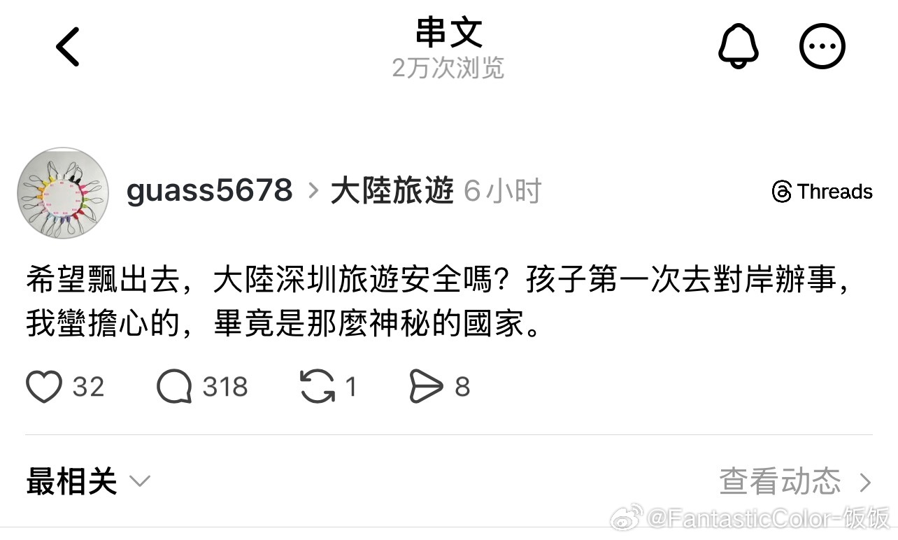 台湾网友发帖询问,去大陆深圳旅游安全吗?