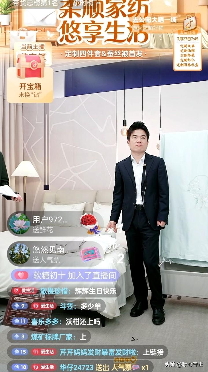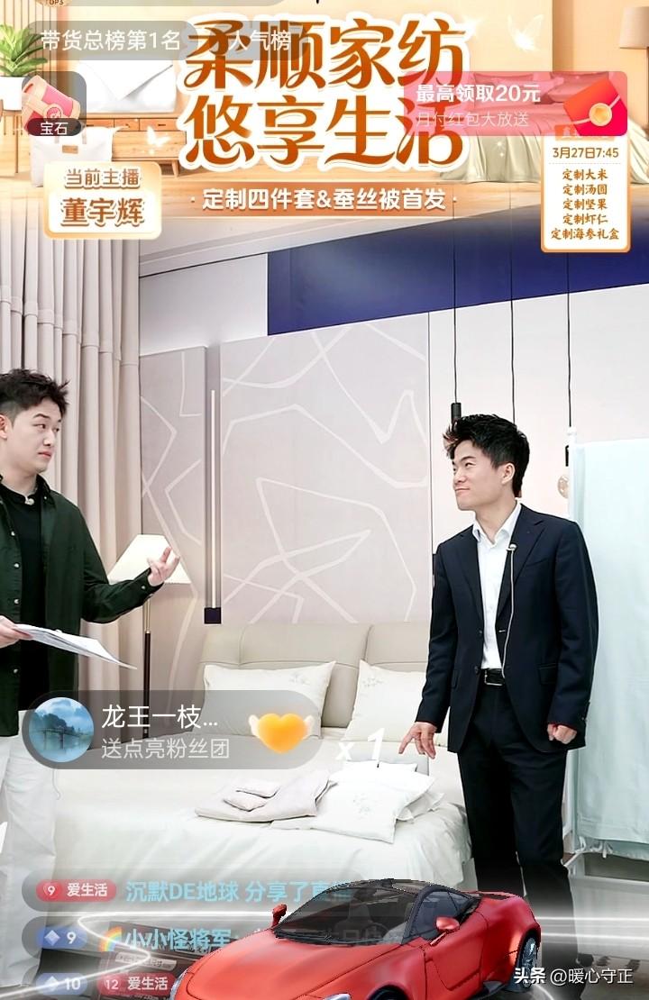 董宇辉来到直播间,人数就10万+,评论区大家都说:彪哥生日快乐。 但是董宇辉和主播都没有搭茬,理解董宇辉的低调,自己的生日,不想占用网络资源,大家说就说了,就当作没看见,一个生日,没有必要提起。 刚刚说起四件套,一会儿给到大家。 董宇辉就离开镜头了,就一会儿切打,就切到董宇辉这边,董宇辉开启了四件套直播。