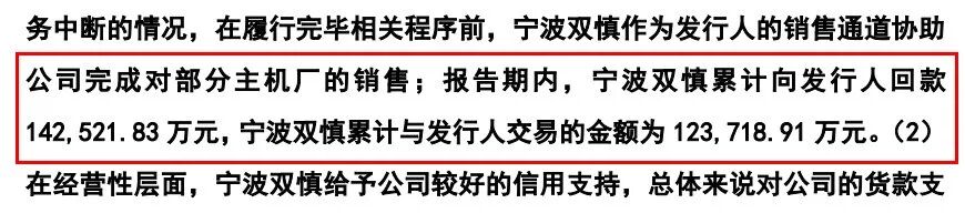 乔路铭在招股书中解释,因部分主机厂供应商资质审核、定点车型供应商调整流程周期较长,为防止业务中断,在相关手续办结前,由宁波双慎作为销售通道,协助完成对部分主机厂的销售。