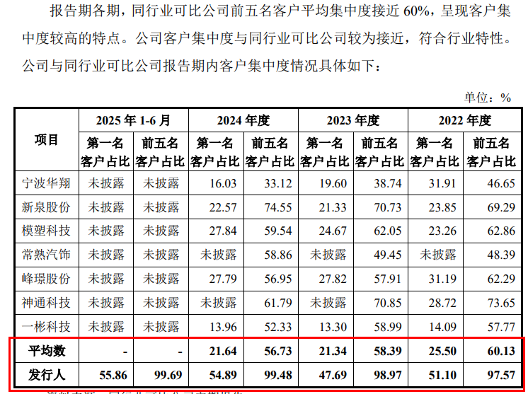 尽管汽车零部件行业下游客户集中属于行业常态,但前两大客户销售占比达到九成左右,在业内仍较为罕见。