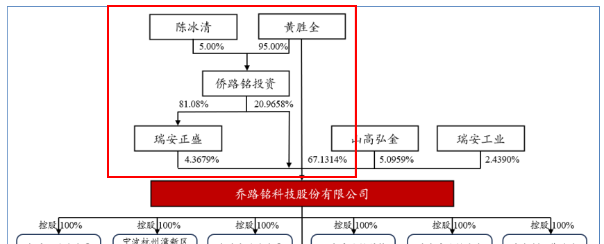 截至招股书签署日,黄胜全合计控制乔路铭92.4651%的股份,为公司的控股股东和实际控制人。与此同时,黄胜全担任公司董事长兼总经理。