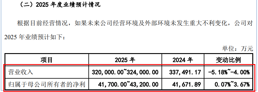 不过,这种业绩连续增长趋势或将被打破。乔路铭预计,2025年实现营业收入32亿元至32.4亿元,同比下滑4%至5.18%;预计实现归母净利润4.17亿元至4.32亿元,变动比例为0.07%至3.67%。