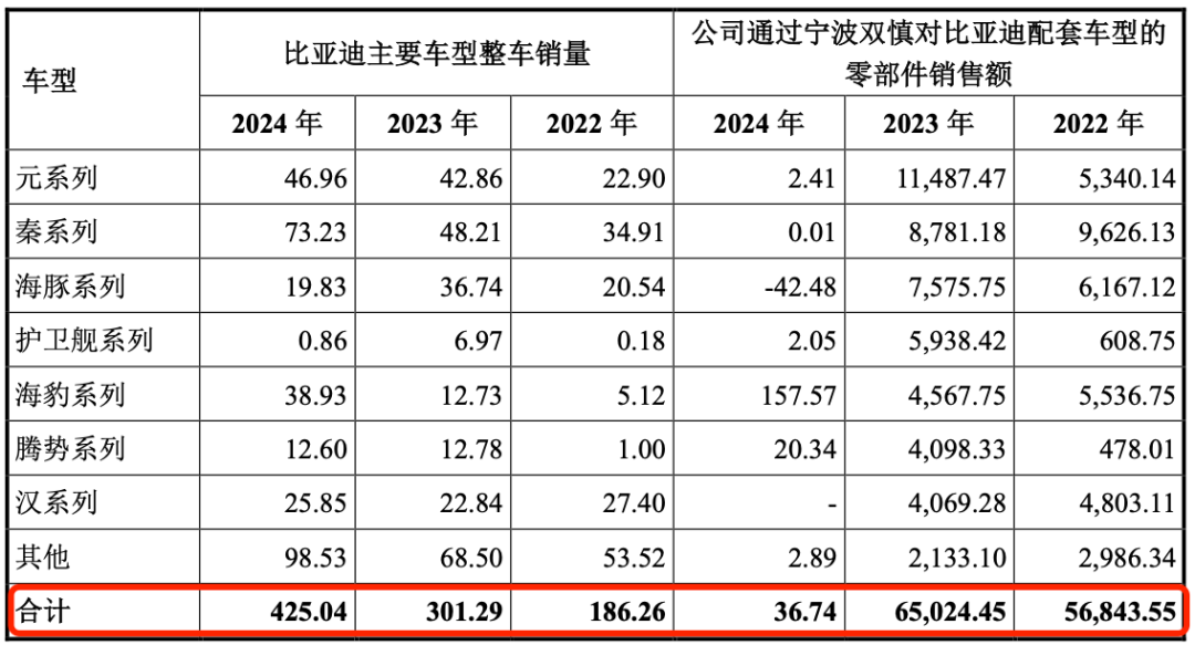 2022年和2023年,乔路铭通过宁波双慎对比亚迪配套车型的零部件销售额分别为5.68亿元、6.50亿元。同时,2022年公司通过宁波双慎向东风岚图实现的销售金额为581.78万元。