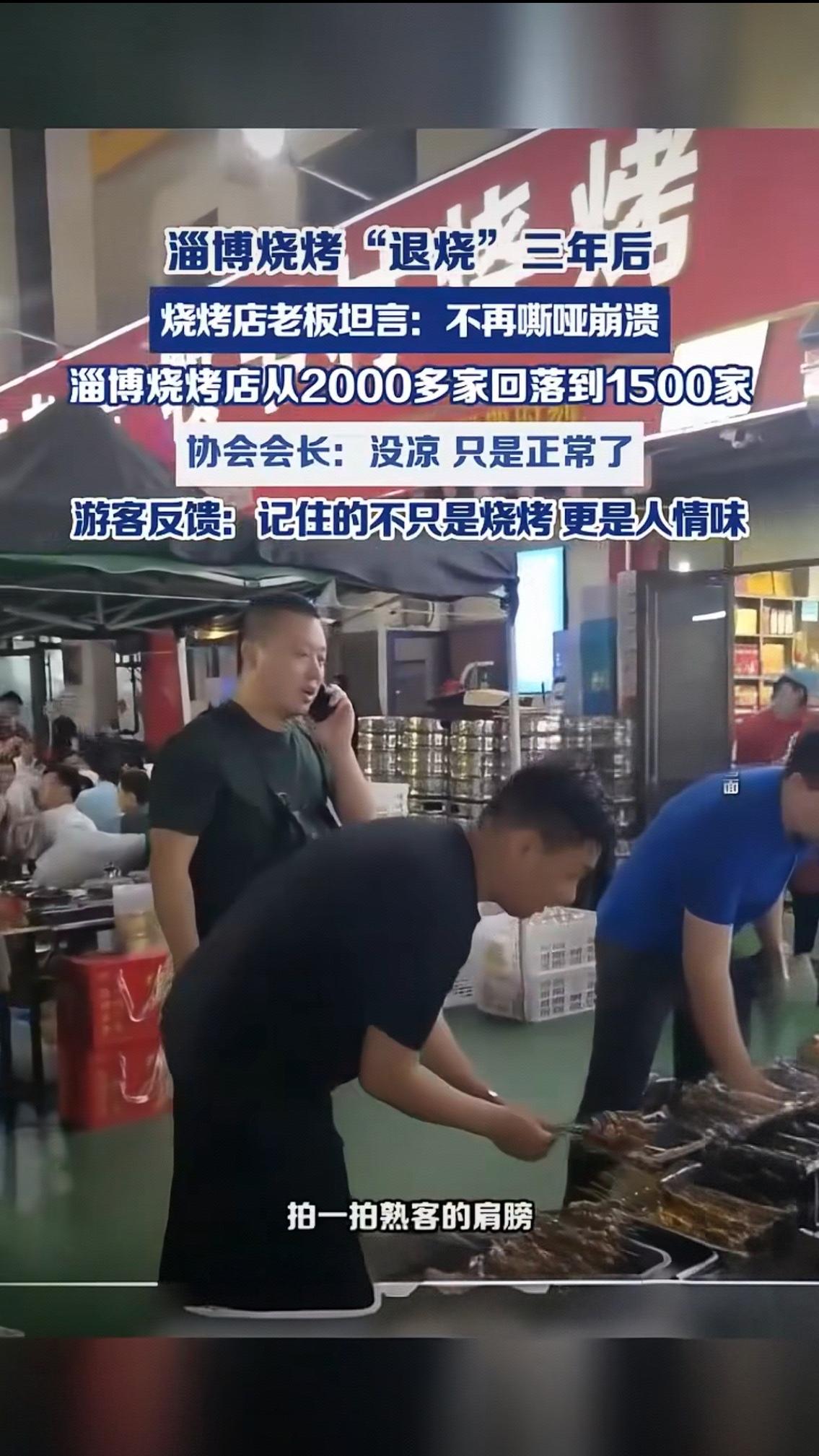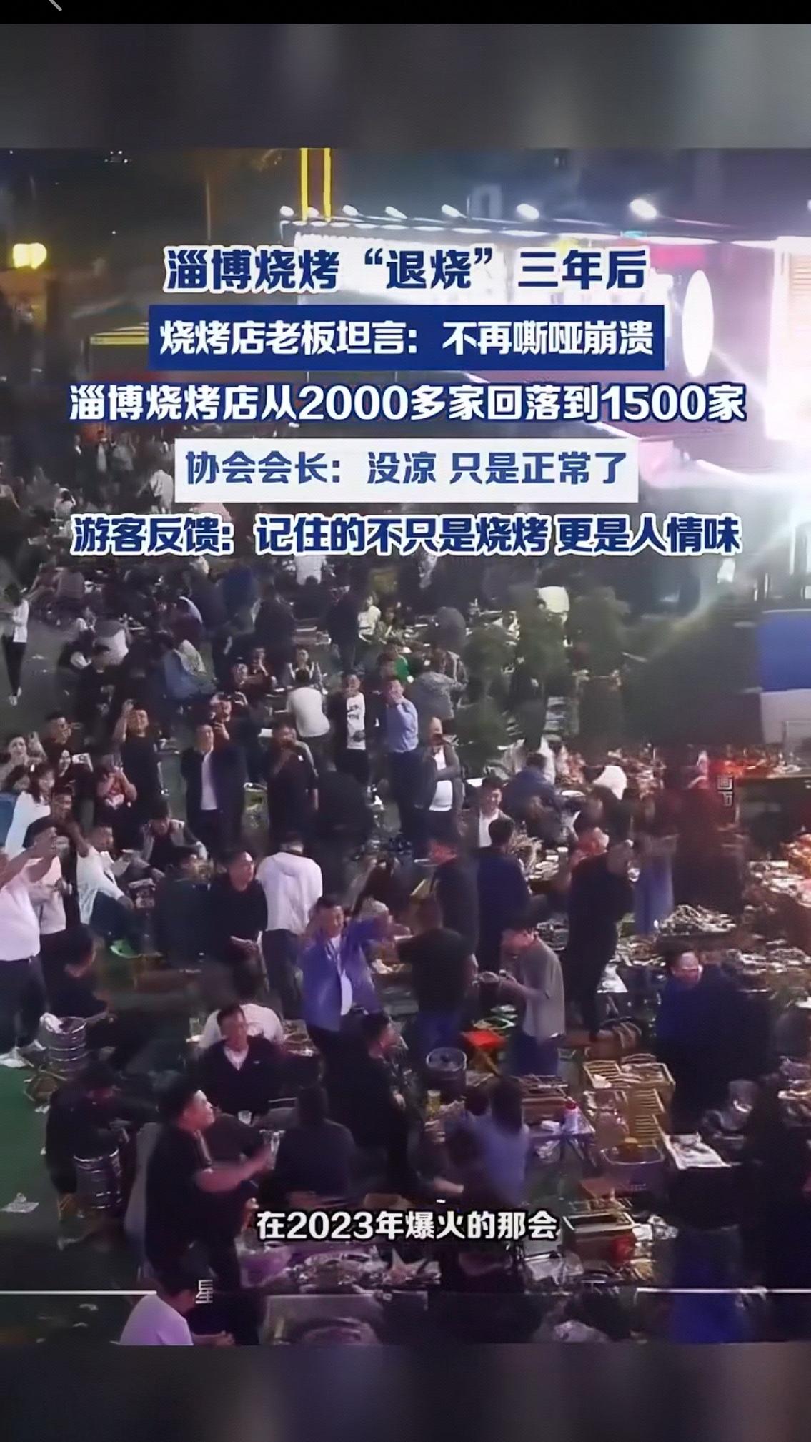 淄博烧烤“退烧”三年:没有凉,只是终于活回了人间烟火 曾几何时,淄博烧烤火遍全网,凌晨的烧烤街灯火通明,排队队伍望不到头,烧烤店老板们扯着嗓子喊单,忙到嘶哑崩溃,连闭眼休息的时间都成了奢望。全城2000多家烧烤店扎堆开业,人人都想抓住这波顶流红利,热闹得仿佛一场永不落幕的盛宴。 如今三年过去,这场现象级的流量狂欢终于褪去狂热,淄博烧烤悄然“退烧”。烧烤店数量从巅峰的2000多家,回落到如今的1500家,那些跟风入局、只想赚快钱的商家悄悄退场,留下的都是真心扎根行业、用心做味道的坚守者。 有烧烤店老板坦言,现在终于不用再被流量推着走,不用熬夜超负荷运转,不用面对无休止的排队焦头烂额,嗓子不再嘶哑,心态也彻底平静下来。不用再为了赶单敷衍味道,能慢慢烤好每一串肉,用心和食客聊几句家常,这份踏实,比爆火时的忙碌更让人安心。 面对外界“淄博烧烤凉了”的质疑,当地烧烤协会会长直言:不是凉了,只是回归正常了。爆火是偶然的流量惊喜,而平稳经营,才是餐饮行业本该有的模样。 来过淄博的游客都说,记住的从来不只是滋滋冒油的小饼烤串,更是这座城市刻在骨子里的人情味。不宰客、不涨价、商家实在、市民热情,这份真诚,才是淄博最珍贵的宝藏。 流量终会散去,唯有真心与品质能长久。淄博烧烤用三年时间告诉我们,比起昙花一现的网红热度,细水长流的烟火气,才最打动人心。这世间所有的繁华,终究都要归于平凡的温暖,而这份平凡,才是生活最本真的模样。 淄博烧烤 淄博身边事