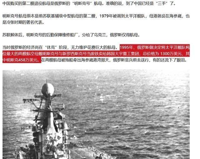 1995年,俄罗斯将2艘航母以1300万美元价格,当废铁卖给韩国,可就在航母即将