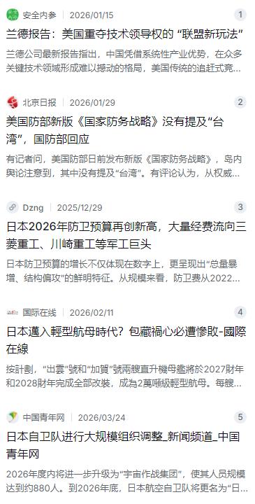 真是破了大天了!老牌美国反华智库“兰德公司”突然支持中国统一,台省的那些“台独”估计已经慌了!美国最具影响力的智库之一“兰德公司”,发布了一份名为《稳定美中竞争》的报告。破天荒地建议美国政府在政治、军事等领域全面降低攻击性,对华采取“妥协”。 麻烦看官老爷们右上角点击一下“关注”,方便您进行讨论和分享,感谢您的支持! 要说2026年开年到现在,国际上最让咱们中国人解气、又让对岸那帮人后背发凉的事儿,那必须得提一嘴美国兰德公司的那份报告。这兰德公司可不是什么路边摊的小作坊,那是美国顶级的智囊团,专门给五角大楼和白宫出谋划策的,以前出的报告,十有八九都是盯着咱们挑刺。可这回邪门了,他们发布了一份叫《稳定美中竞争》的报告,里头的调调大变样,居然破天荒地建议美国政府,在台湾问题上得悠着点,别老想着硬碰硬。 这份报告说白了,就是给美国当局泼了一盆冷水。它很直白地指出,美国现在根本没必要为了“台独”那点破事去冒险跟中国动武。为啥?因为代价太高了,风险也太大了,搞不好就得把自己搭进去。所以报告里头明明白白写着,建议美国政府别支持台湾独立,也别总想着搞永久分裂那套把戏,反而应该支持和平统一的渐进路径。这话一出来,岛内那帮平时叫得最欢的“台独”分子,估计晚上都得失眠了,他们心里比谁都清楚,美国这个“老大哥”要是真撤了火,他们就真成了没娘疼的野孩子了。 这份报告的厉害之处,还不只是嘴上说说,它给美国出了个实招:通过政治保证、建立沟通机制,还有危机管控,来降低在台海擦枪走火的风险。说白了,就是告诉美国那些政客,别动不动就拿台湾说事,把火药桶点着了,最后谁都没好果子吃。其实稍微懂点国际局势的人都看得出来,美国这是自己算过账了,发现硬对抗根本走不通,与其被绑在“台独”的战车上翻车,不如赶紧找台阶下。 不过话说回来,就在美国那边透露出要战略后撤的意思时,咱们东边的邻居日本,动作可是一点没闲着。日本政府刚刚敲定的2026财年防卫预算,数字大得吓人,直接冲到了9.04万亿日元。这可不是个小数目,关键是这已经是他们连续第14年涨军费了,这劲头比咱们每年的GDP增长还稳当。而且他们现在的防卫支出占GDP的比重已经干到了2%,这什么概念?这意味着日本彻底把战后那个“专守防卫”的老规矩给扔到九霄云外了,这是铁了心要搞军事扩张。 更让人警惕的是,日本自卫队现在正在紧锣密鼓地给自己“换装升级”。最显眼的就是那两艘“出云”级直升机驱逐舰,现在已经完成了航母化改装,别看它叫驱逐舰,改完那就是妥妥的轻型航母,专门搭载F-35B隐形战机。日本航空自卫队现在已经开始接收F-35B了,就部署在靠近西南方向的新田原基地,这意图再明显不过了,就是冲着咱们来的。 除了搞航母,日本在太空这块也没闲着。他们成立了“宇宙作战团”,把太空当成了新的战场。按照他们的计划,今年航空自卫队还要正式改名叫“航空宇宙自卫队”,这个“宇宙”两个字一加上去,野心就全露出来了。他们正在搞空天一体化,以后天上的卫星、地面的导弹,全都要捏在一起打配合。说白了,日本这是在美国可能往后缩的时候,自己跳出来想当亚太地区的“二警长”。 一边是美国智库开始讲道理,承认硬来不行,主张妥协;另一边是日本拿着真金白银往军事上砸,拼命给自己松绑。这一退一进之间,其实把国际政治的底色看得透透的——美国想把日本推到前台当炮灰,日本也想借着美国撑腰的机会,把和平宪法那根绳子彻底挣断。 不过,对咱们来说,不管是美国的报告还是日本的军费,说到底都是外部因素。真正让那帮“台独”分子慌神的,是这份报告透露出的一个信号:外部势力干预台海的窗口,正在一点点关上。以前他们总觉得真打起来美国会来救,现在连美国自己的顶级智库都说了,别为台湾冒险,这等于是在心理上给了他们致命一击。 而且这种信号是连续的,不是孤立的。就在兰德这份报告引发热议之后,美国国防部发布的新版《国家防务战略》里头,居然连“台湾”两个字都没提。这在以前是不可想象的,以前每回美国出这种战略文件,不拿台湾说事就像没完成任务一样。这回突然安静了,岛内舆论都在议论,说这是美国战略后撤的明显信号。 其实说白了,国际政治就是一场实力的博弈。兰德公司这种老牌智库,向来是看菜下饭的,他们的研究报告之所以敢建议美国“妥协”,不是因为他们突然变得爱好和平了,而是因为他们算来算去,发现硬碰硬的胜算越来越小。与其最后输得难看,不如现在找个体面的方式收场。这背后折射的,是中国综合国力实实在在的增强,是咱们在台海的军事准备让对手不得不掂量掂量。