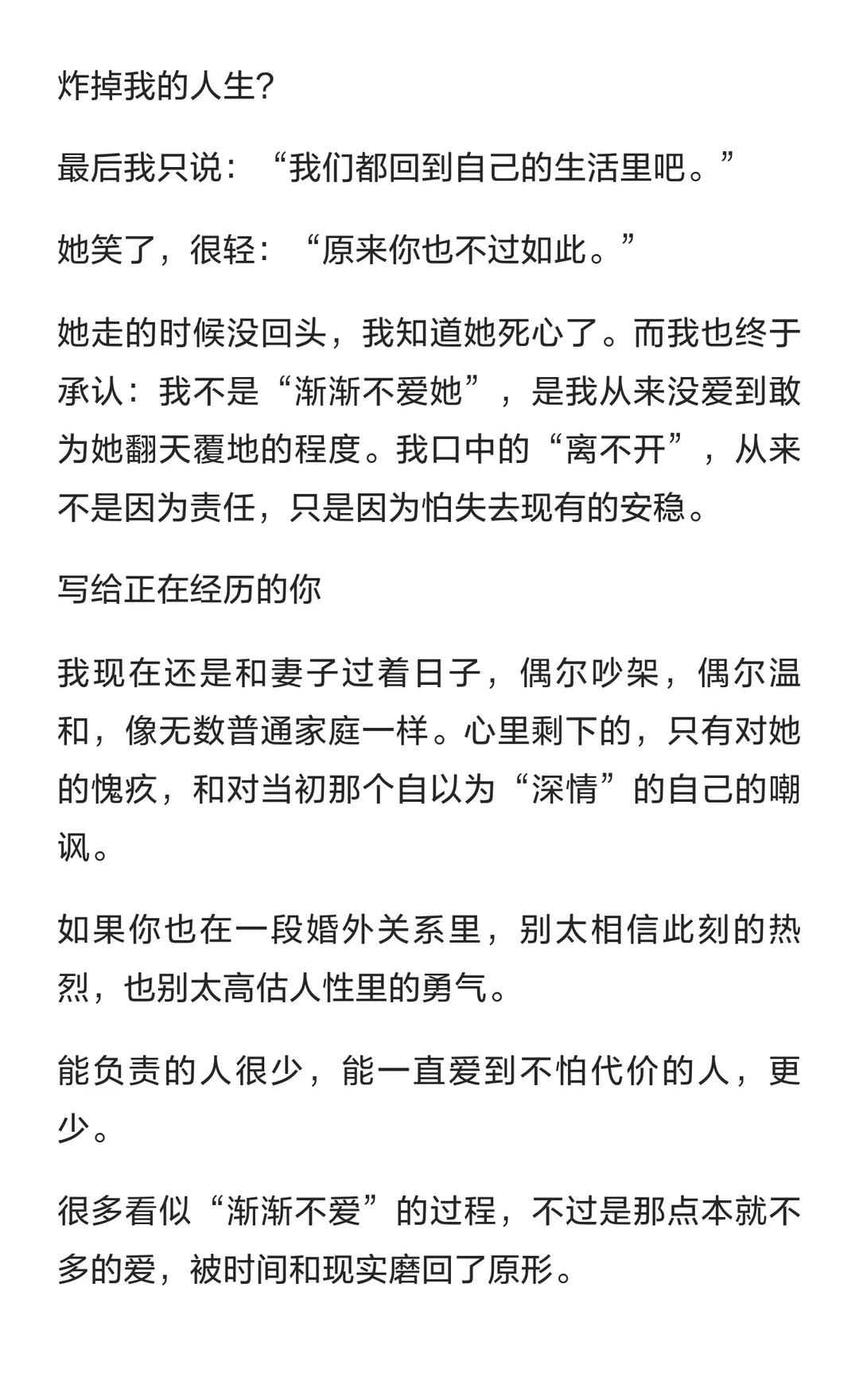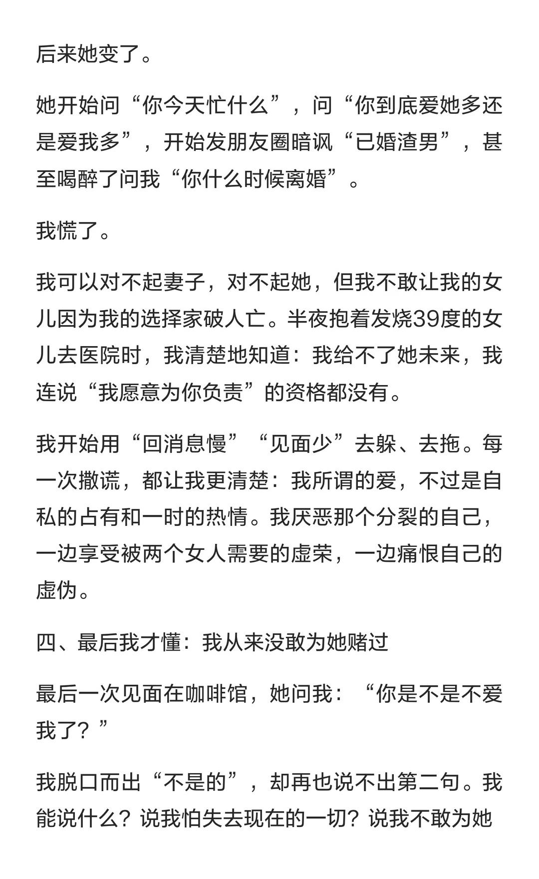 一个出轨男人的自白:我从来没敢为她,赌上 情感树洞 情感分享 婚外情 婚姻危机 第三者 爱情 女性成长 女性 女性智慧