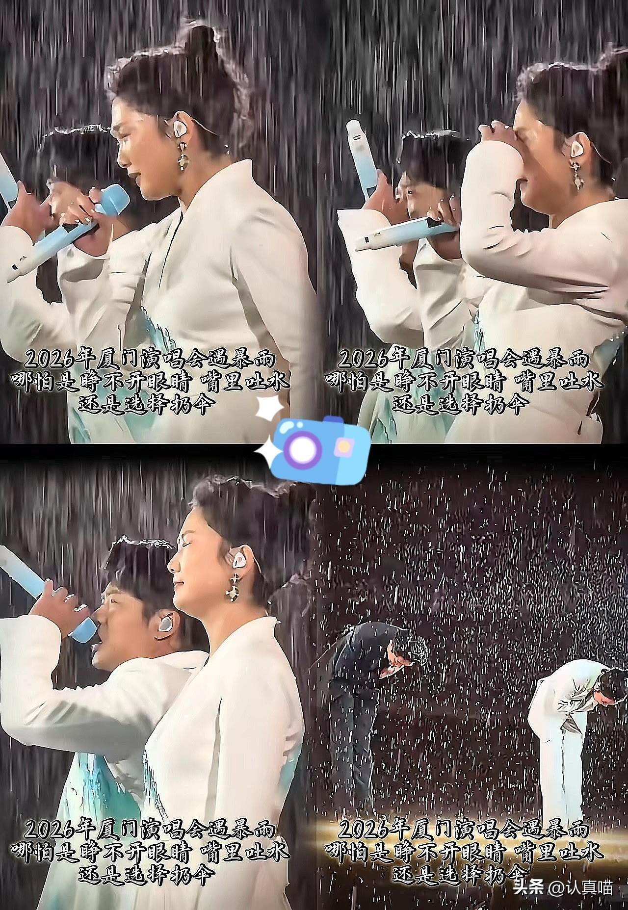 凤凰传奇,又一次凭实力火出了圈! 3月29日直接霸榜热搜,全因厦门那场突如其来的暴雨。 本以为大雨会搅黄整场演出,没想到反而成就了年度最燃现场。 玲花和曾毅索性丢开雨伞,在大雨里放声开唱,浑身湿透也丝毫没有敷衍划水,越唱越有感染力。 台下上万观众没有一人退缩离场,伴着风雨大合唱、尽情摇摆,场面热烈又动人。