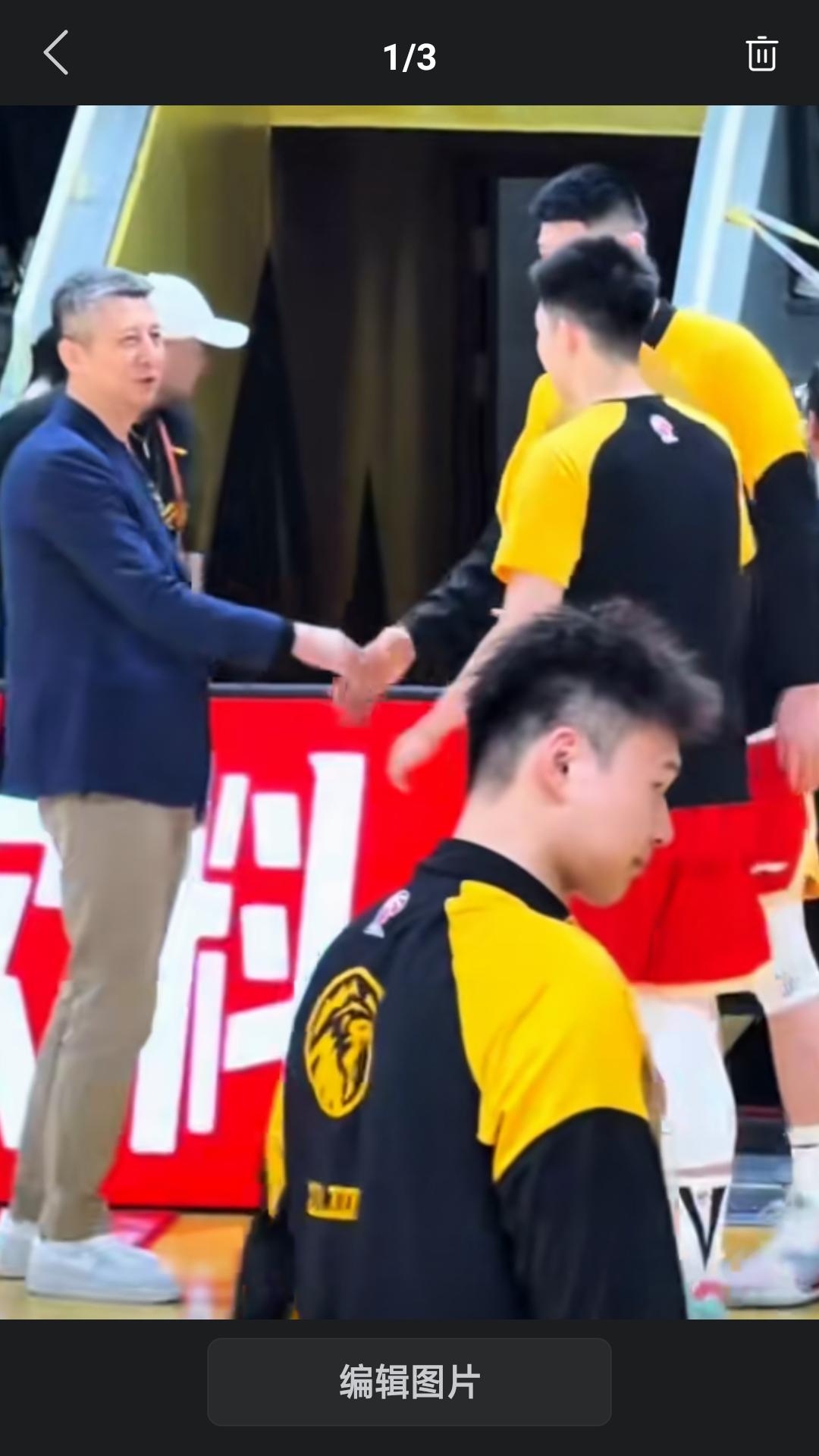 【中国男篮主教练郭士强空降杭州黄龙体育馆,现场观战浙江广厦队主场与江苏肯尼亚队的比赛。赛前郭指导来到场边与国家队弟子胡金秋和朱俊龙握手问候,热情交流。足以看出老叔队大秋和小朱的器重啊!】