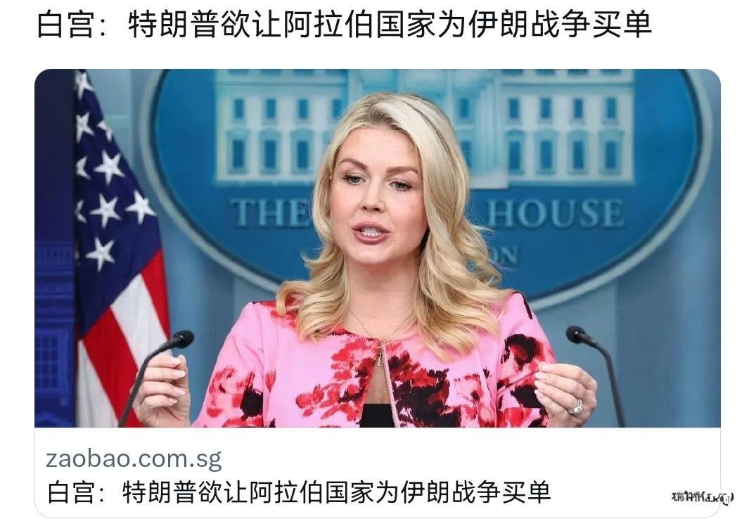 海湾国家全部看走眼了!没想到美国会来这么一手! 3月30日,美国白宫新闻秘书莱维特被问及阿拉伯国家是否会协助支付战争费用时,她说她不会抢在特朗普之前透露消息,但这确实是特朗普的一个想法。 我认为总统很可能会呼吁他们这么做。我知道他有这个想法,而且我认为,你们会从他那里听到更多关于此事的消息。这话一出来,估计海湾那些国家的领导人,肠子都快悔青了。 他们之前一门心思跟着美国走,花大价钱买美国的武器,又主动加大对美投资,说白了就是想靠砸钱,换美国的安全庇护。毕竟这些年,他们一直把伊朗当成主要安全威胁,觉得有美国在背后撑腰,就能高枕无忧。 可谁能想到,美国居然能精明到这个地步,打伊朗的仗,自己不想全额掏钱,反倒惦记上了海湾国家的腰包。可能有人会说,以前海湾战争的时候,海湾国家也帮美国付过战争费用。 但那时候不一样,当年是伊拉克入侵科威特,海湾国家自身面临直接威胁,美国出兵是帮他们解围,他们掏钱算是情理之中。 这次完全不同,现在的军事行动,是美国和以色列单方面发起的,海湾国家压根就没直接参与其中。说白了,美国是在为自己的战略利益打仗,却要让海湾国家来埋单,这算盘打得也太响了。 特朗普的心思其实很好猜,他一向把经济利益看得比什么都重。现在美国国债高得吓人,打仗又烧钱,据估算,光对伊朗军事行动的头几天,花费就超过百亿。 他之前就曾要求日韩全额承担美军的防卫费用,现在把主意打到海湾国家身上,一点都不意外。对他来说,盟友就是用来“薅羊毛”的,能省一点是一点,反正海湾国家有的是钱。 最尴尬的还是海湾国家,现在陷入了两难境地。不掏钱吧,怕美国翻脸,不再提供安全保护,到时候面对伊朗的威胁,他们自身根本扛不住。 掏钱吧,又实在不甘心。自己本来就已经花了大把钱买美国武器、投资美国,现在还要额外承担战争费用,相当于被美国两头收割。 更有意思的是,部分海湾国家之前还私下推动美国对伊朗发动地面战,觉得这是削弱伊朗实力的好机会。现在倒好,美国反手就给他们来了这么一下,估计他们现在连哭的心都有了。 其实这也暴露了美国“交易型外交”的本质,没有永远的盟友,只有永远的利益。海湾国家一直以为自己和美国是“铁哥们”,殊不知在特朗普眼里,他们不过是能随时掏钱的“冤大头”。 莱维特这话,说白了就是提前放风,给海湾国家打个预防针。接下来,特朗普大概率会亲自出面,向海湾国家施压,逼他们掏钱。 至于海湾国家最终会怎么选,现在还不好说。但可以肯定的是,经过这一茬,他们心里肯定清楚,美国靠不住,所谓的安全庇护,从来都不是免费的午餐。 只能说,海湾国家这次是真的看走眼了,错把美国的利益交换,当成了真心实意的盟友情谊。这一手,美国玩得确实够狠,也够现实。