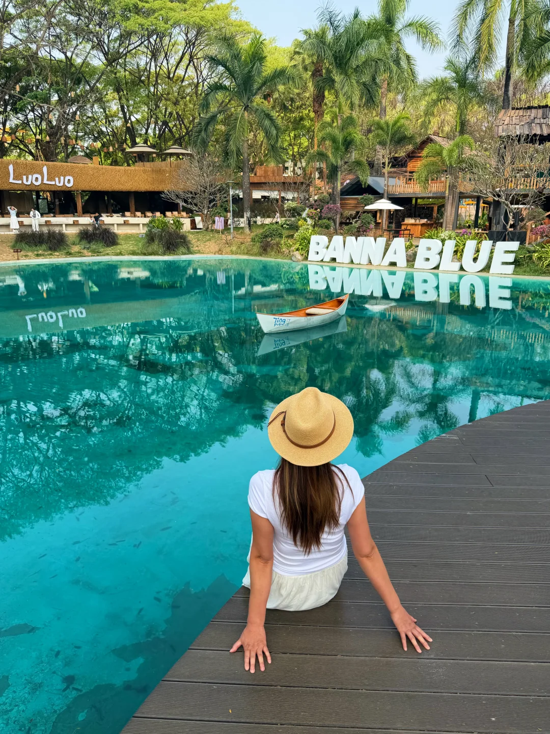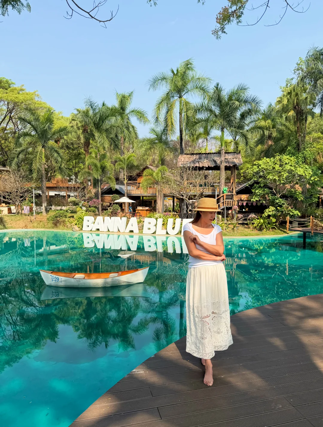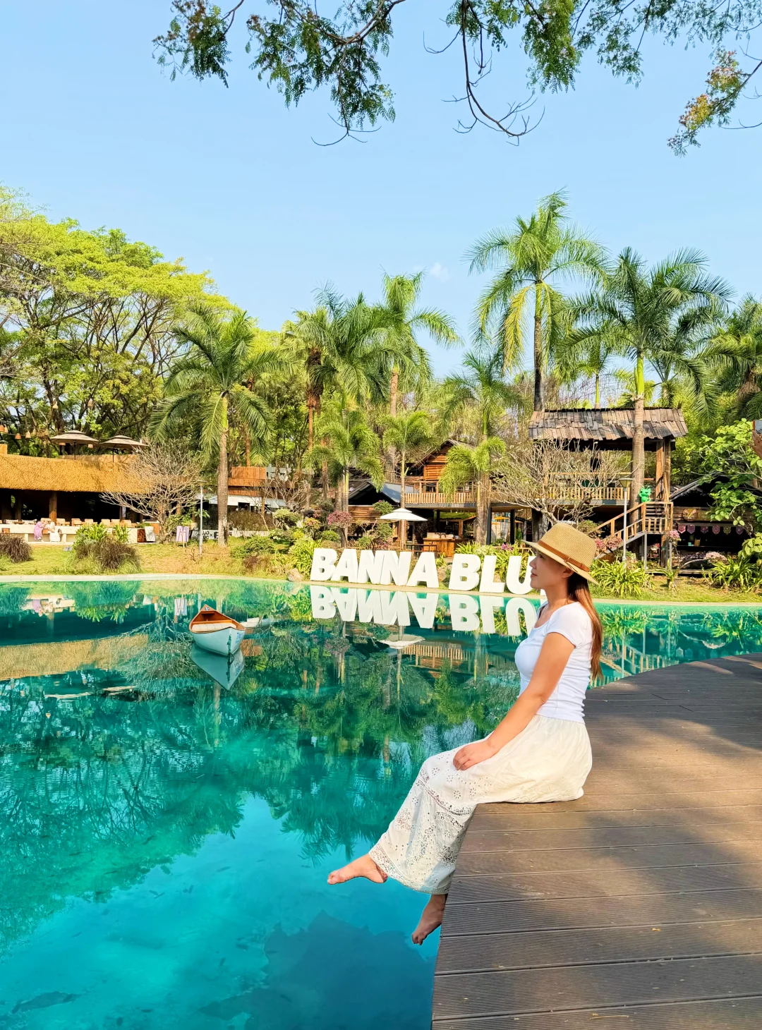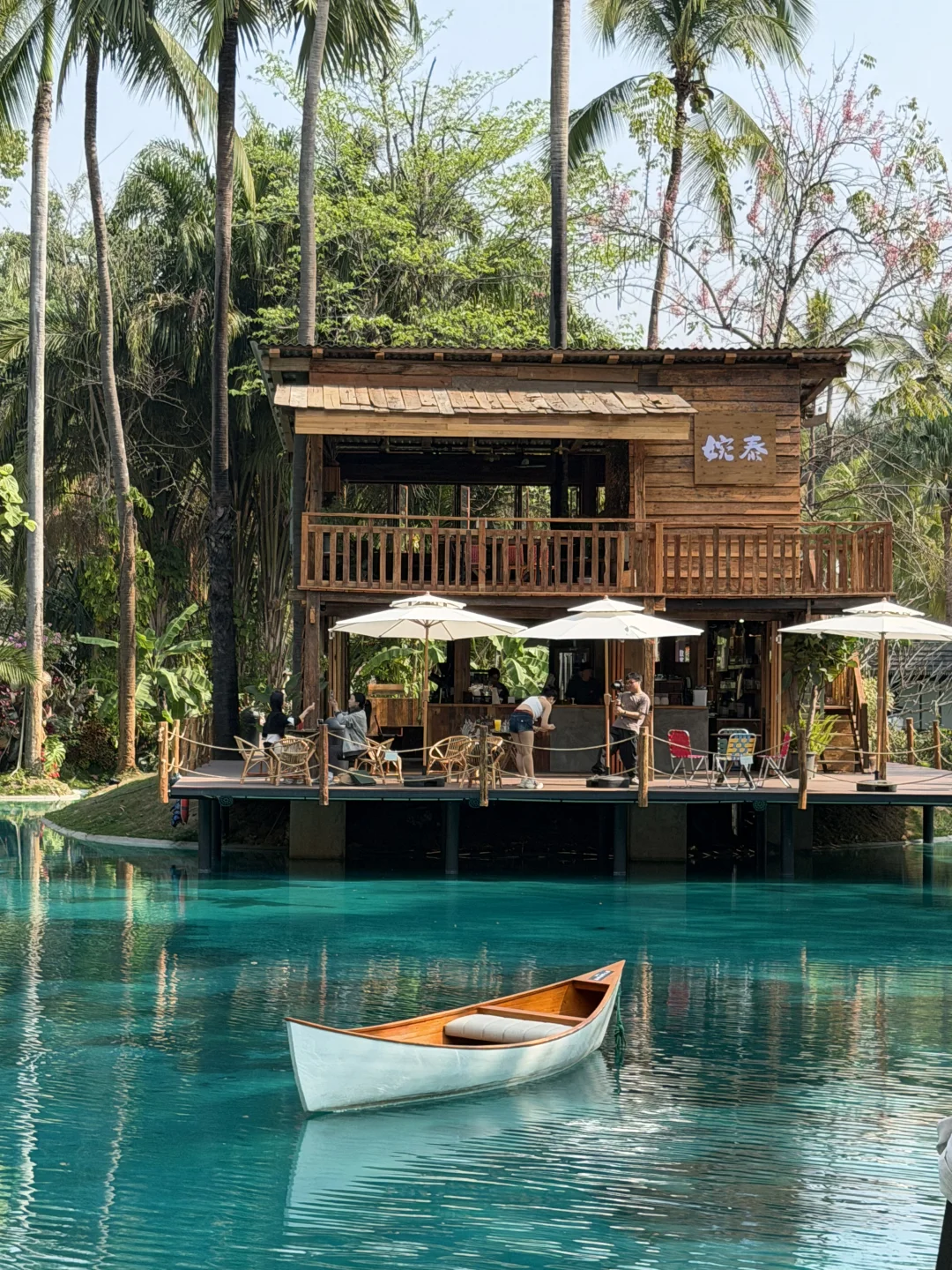 📍西双版纳热带花卉园(图1-8),这片区域叫“ Banna BLue”,就在花卉园入口游客中心旁边,有咖啡、酒吧、餐饮、而市集多种业态。最美的是一池碧水,与木屋、绿值相配,太有东南亚的感觉了。这里拍照的人很多,网红点甚至要排队,想人少得尽量赶早。