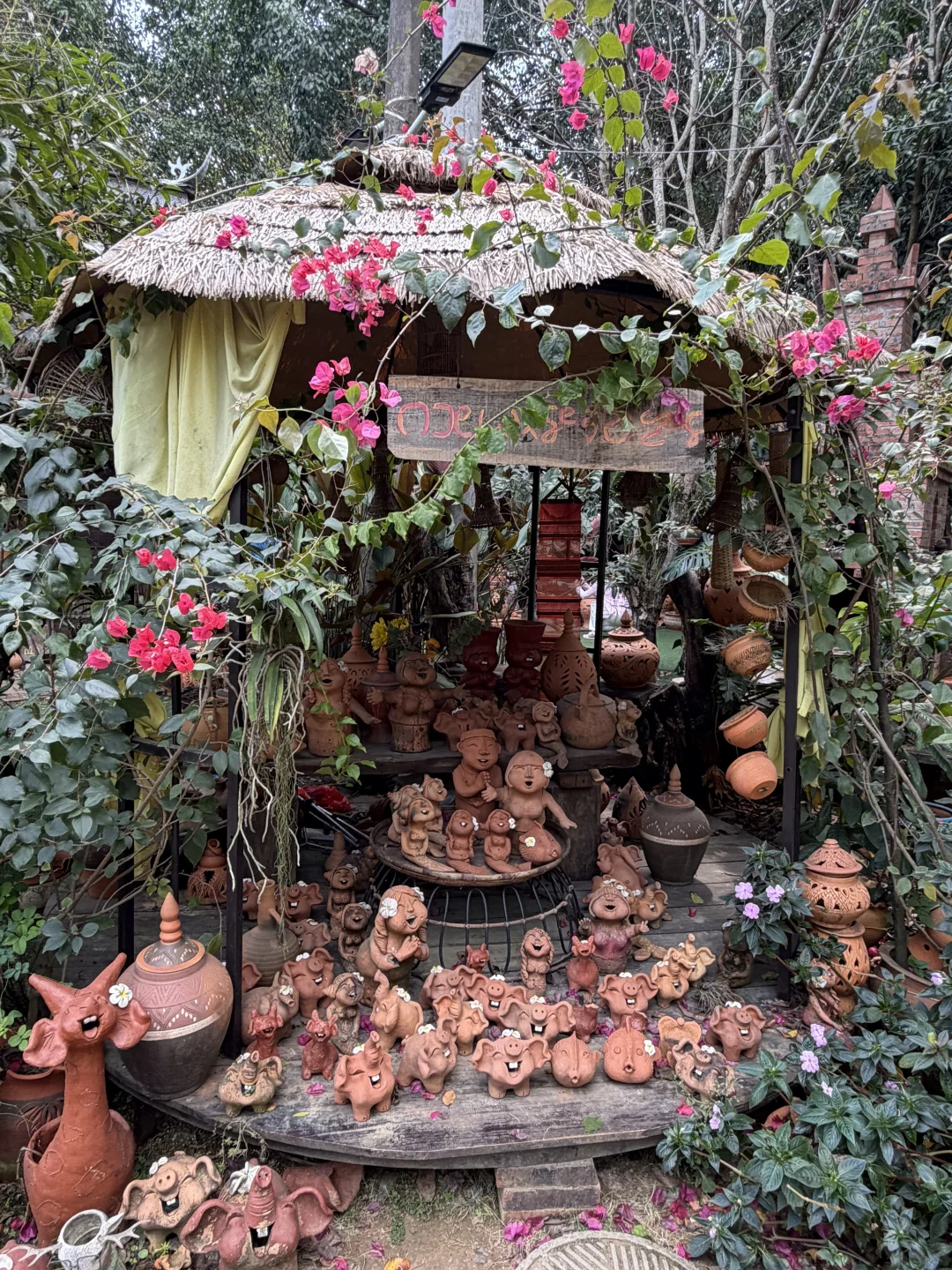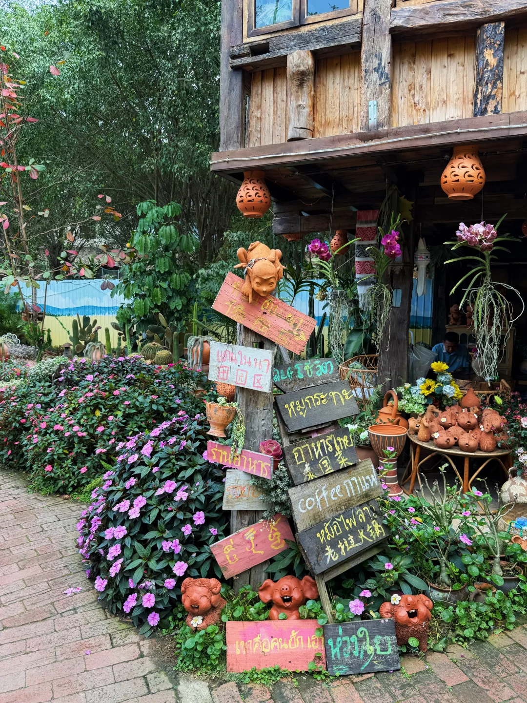 📍多肉别院·傣陶田野咖啡(图9–16),这是离机场很近的一家庭院餐厅,一进小院,满屏的绿植多肉、还有很多陶器制品,花花绿绿好漂亮!庭院中央泰式竹楼、绿池和小船拍出来像泰兰德一样。可以安排在到达或离开版纳的时候去,或吃饭、或下午茶,或拍照,都不会让人失望。