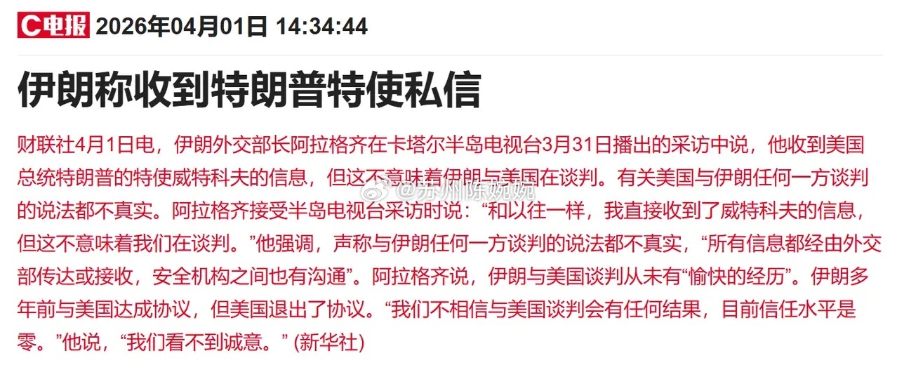 一是新华社最新消息,伊方已向调解方表达了立场;