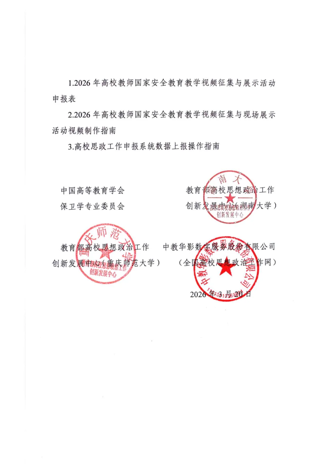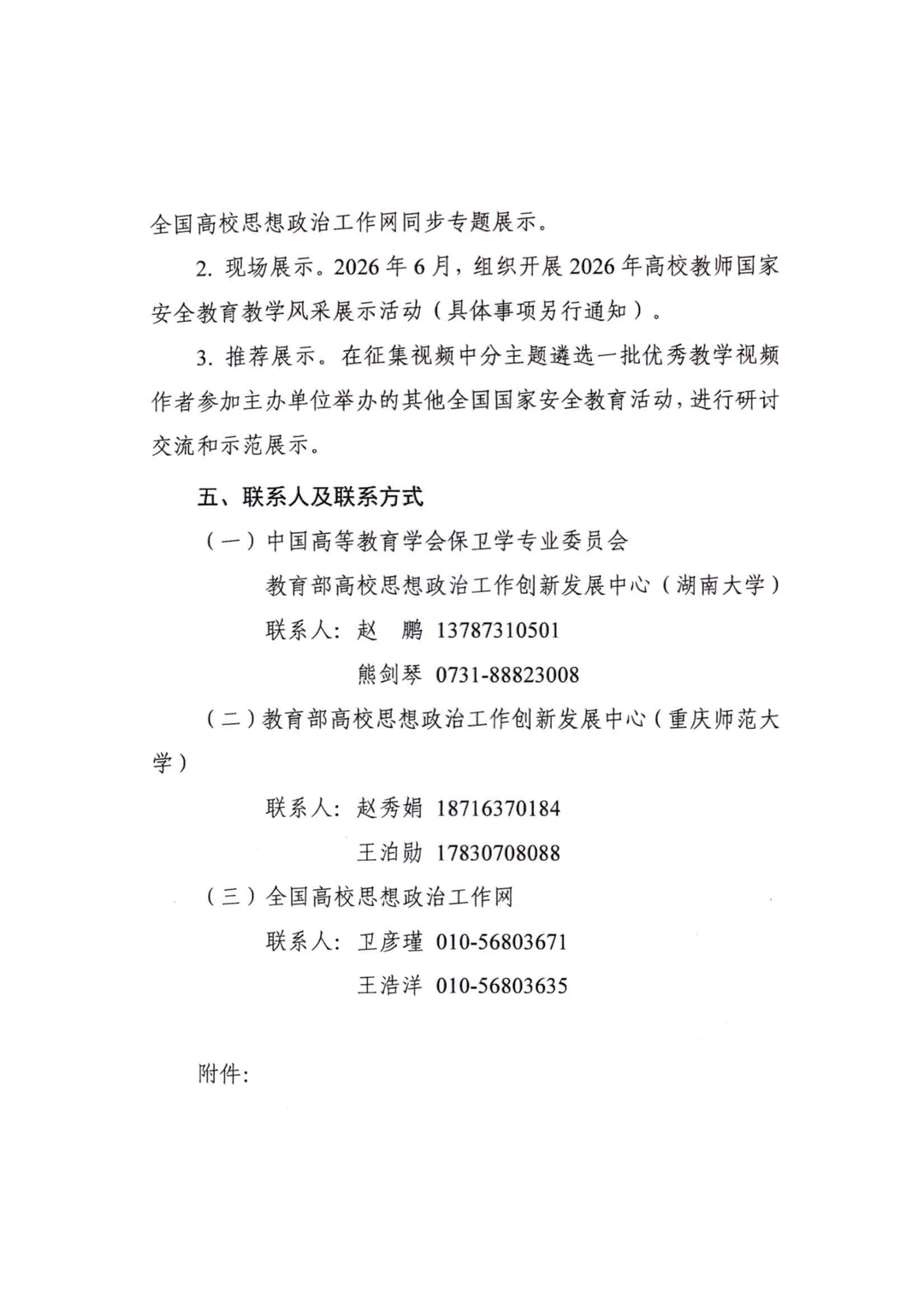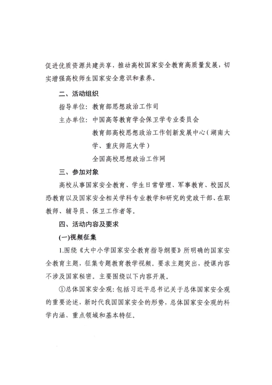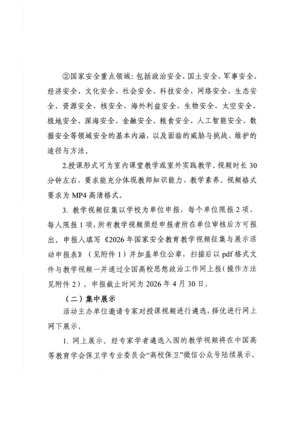 以上是关于开展2026年高校教师国家安全教育教学视频征集与现场展示活动的通知