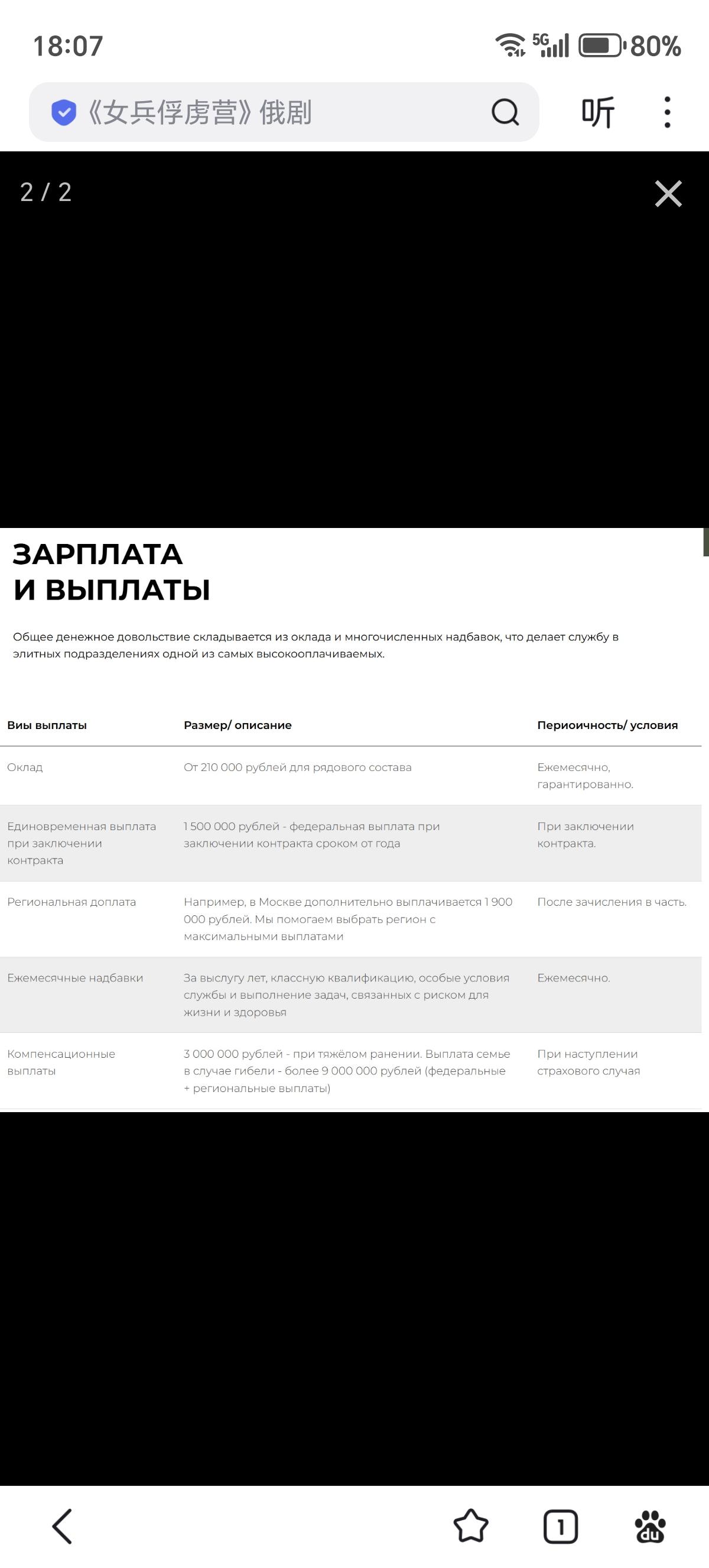 俄罗斯联邦空降部队的最新薪酬水平: 列兵起薪21万卢布(约合人民币17,830元),按月支付; 签约1年及以上可获150万卢布(约合人民币127,360元)的一次性联邦津贴,签约时立刻支付; 视地区决定的地区补贴,莫斯科地区为190万卢布(约合人民币161,320元),进入部队后支付; 突击奖金10万卢布(约合人民币8,490元),成功完成突击任务后支付; 最高1000万卢布(约合人民币849,050元)的债务免除; 重伤补贴金300万卢布(约合人民币254,720元);阵亡抚恤金900万卢布(约合人民币764,150元)起。