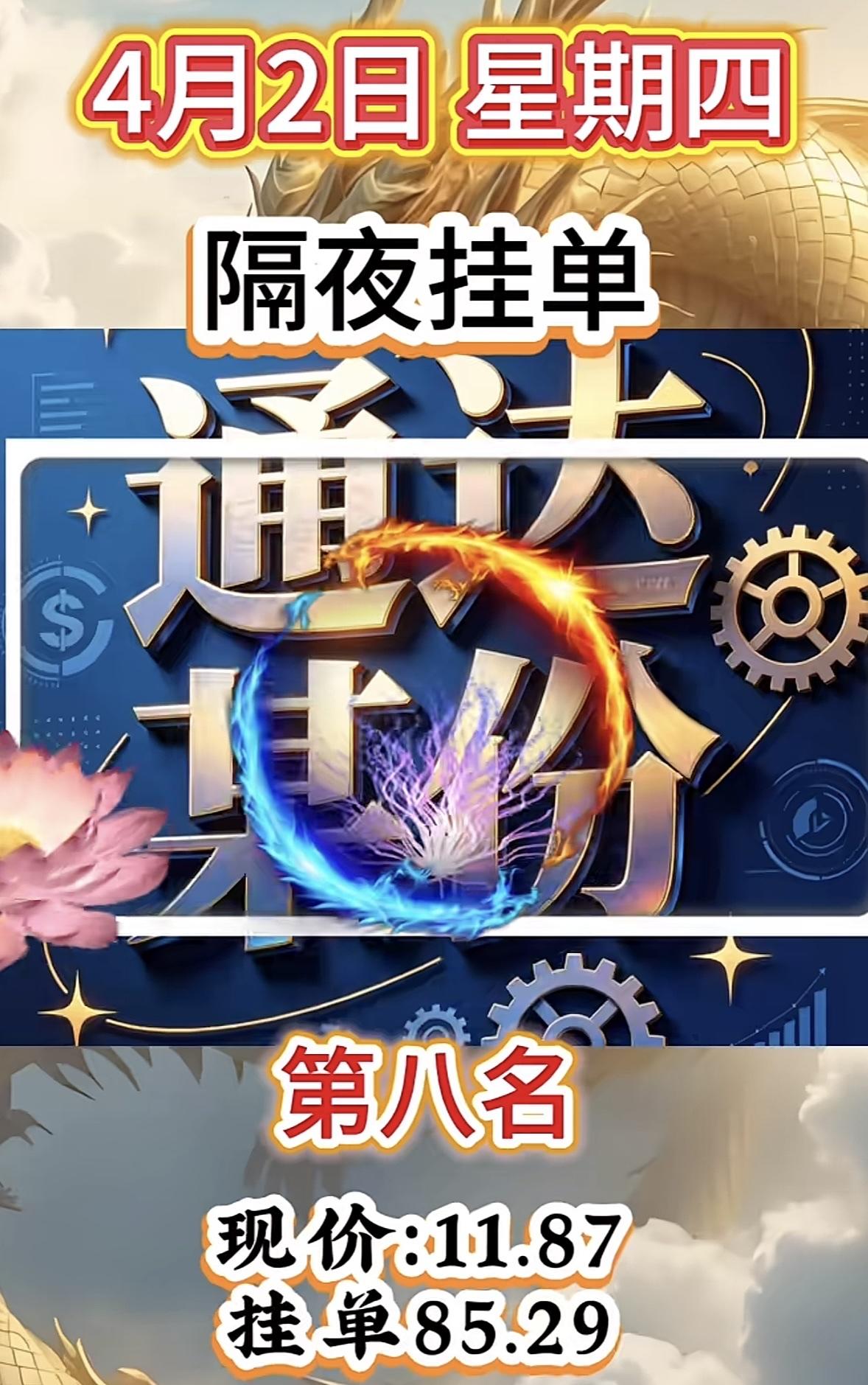 4月2日周四暗盘隔夜挂单排行榜出炉 这操作简直是智慧之举!很多工作忙、没时间白天盯盘的朋友,都爱用隔夜挂单。其实这门道不少。隔夜挂单就是当天交易结束后到次日集合竞价前,通过券商系统提交委托单,但各家券商开放接受委托时间不同,有的晚上八九点就行,有的得等到凌晨,得问客服确认。 集合竞价挂单有价格、时间、数量优先原则。9点15 - 9点20挂单可撤,主力借此测市场反应;9点20 - 9点25不能撤,开盘价基本确定;9点25 - 9点30可挂可撤,已成交不能撤。不管挂什么价,按撮合价成交。要是收盘后股票爆利好,当晚提前挂单,第二天9点15就能成交,比第二天再挂可快多了!