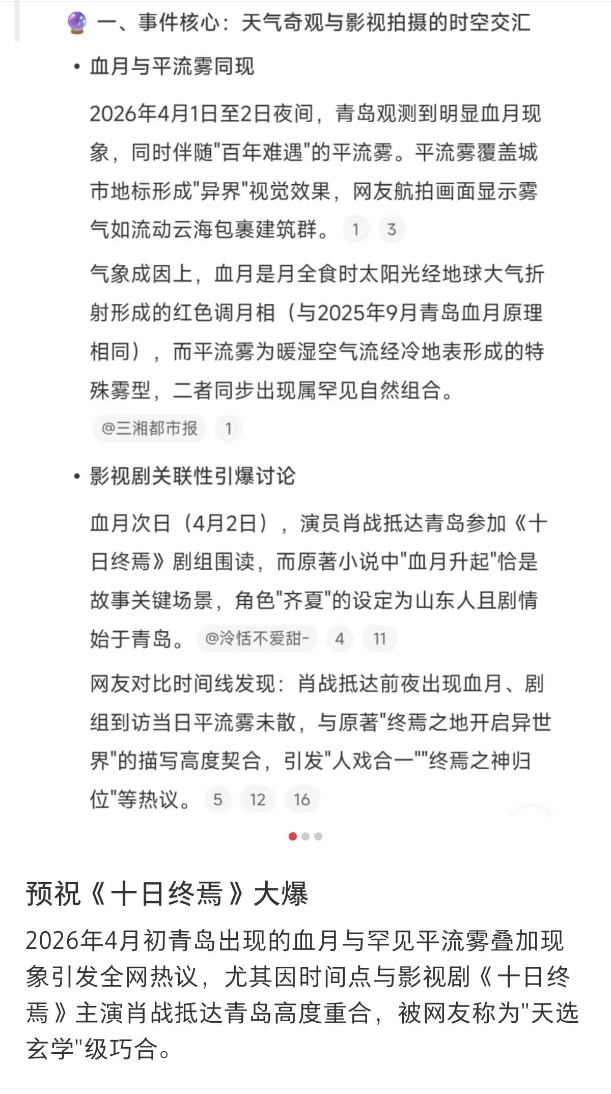 哈哈哈哈,前年横店暴雪,正好是拍藏海传的时候,去年藏海传大爆了,今年青岛百年一遇超级平流雾,肖战正好到青岛,天选齐夏,真是玄学[呲牙][呲牙][呲牙]