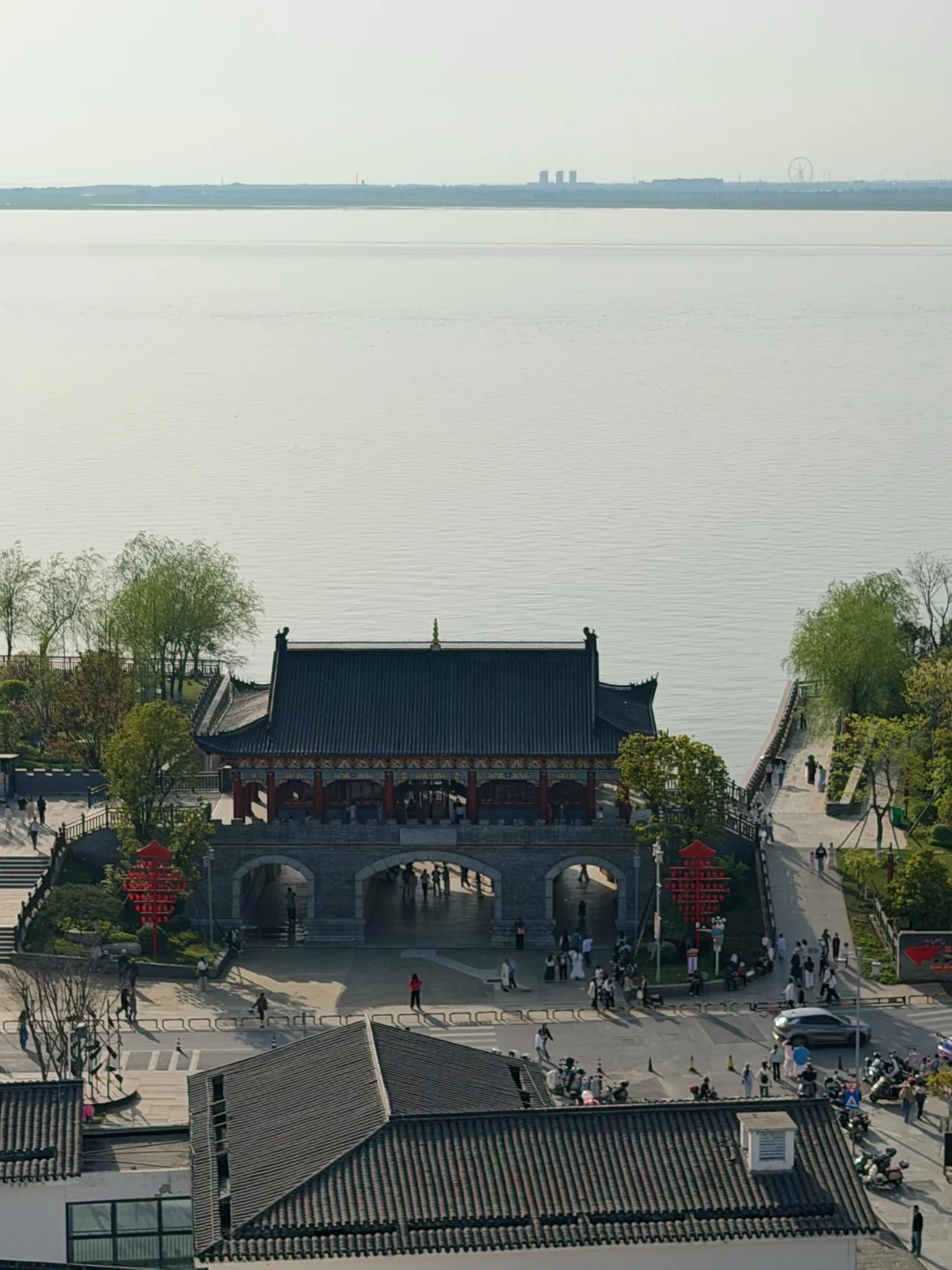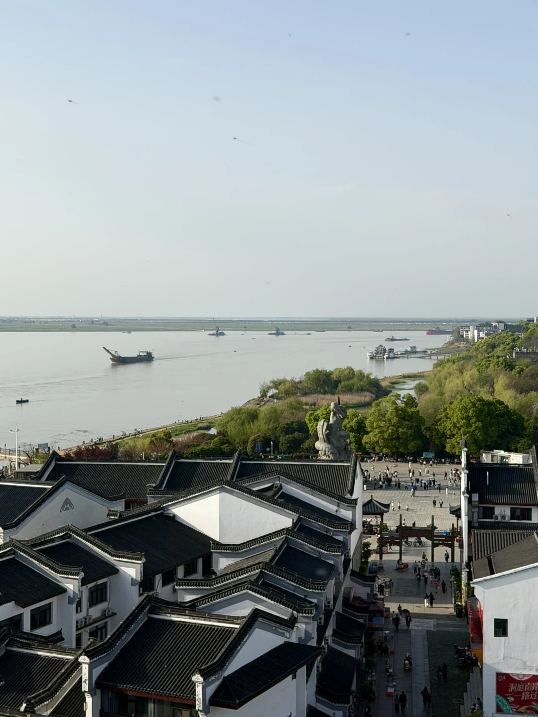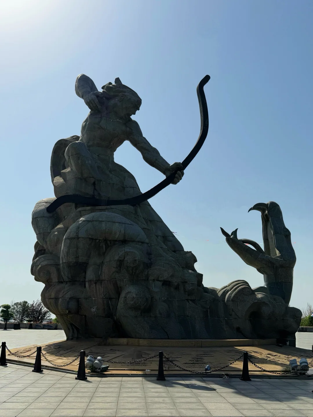 📍巴陵广场:广场上有巨大的,“后羿射巴蛇”雕塑,傍晚可在城门旁看洞庭湖日落。