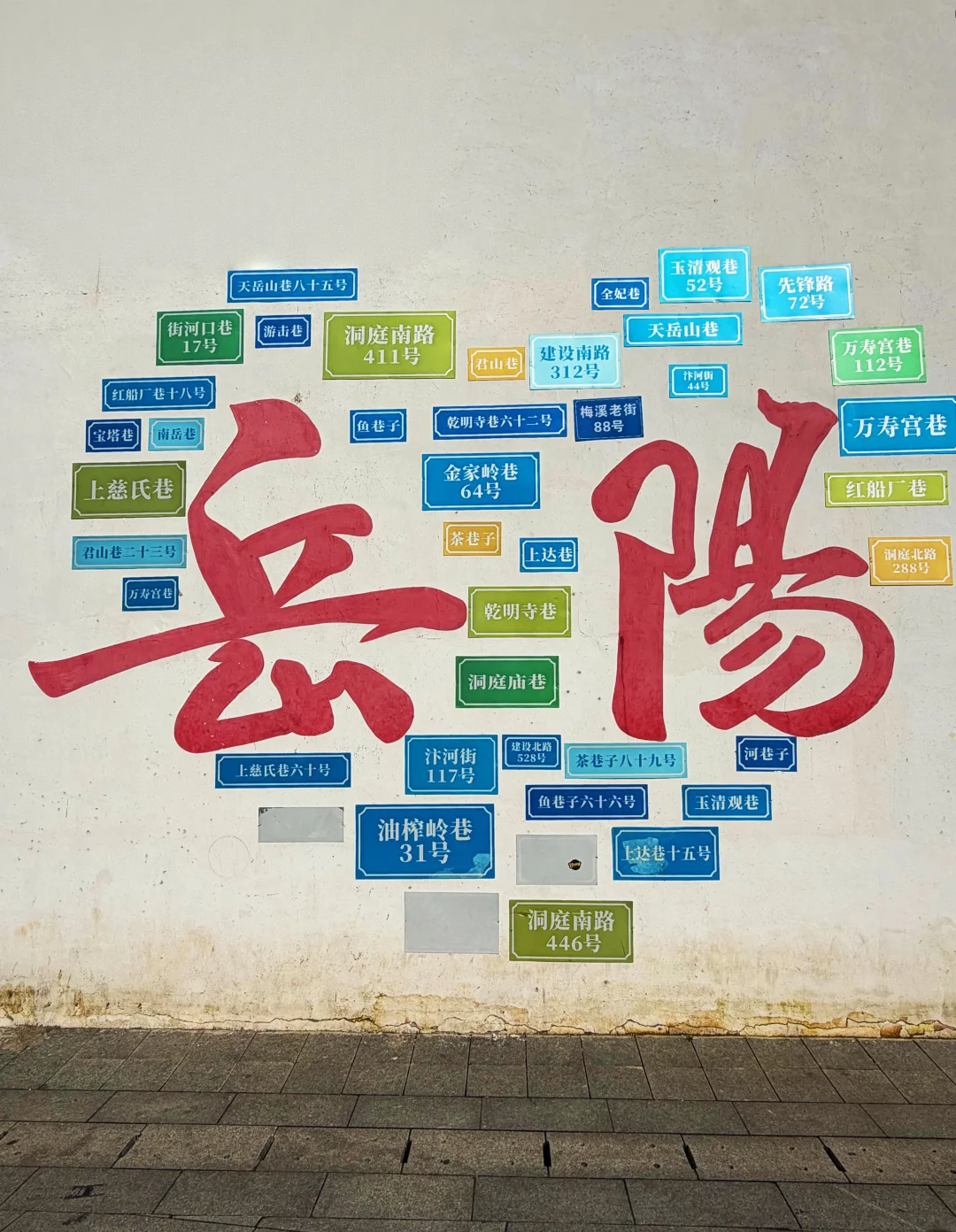 📍岳阳楼北门网红墙:定位“岳阳楼街道办事处”公交站,车可停岳阳楼景区停车场🅿️,在“岳阳”字样的红墙前打卡,隔着马路可拍到网红墙与岳阳楼同框。