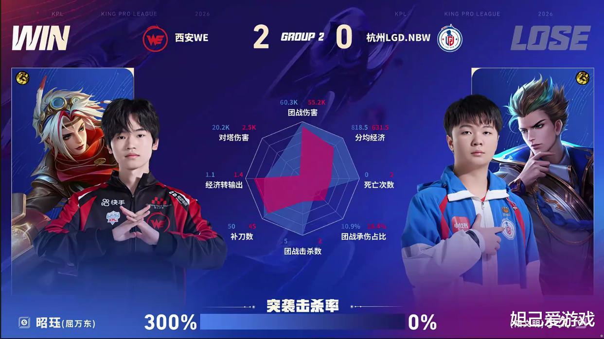 更可怕的是,WE的首发发育路选手昭珏连续两个大场、六个小场一次没死,成功对位目前遇到的所有射手。一句真强,足以形容。
