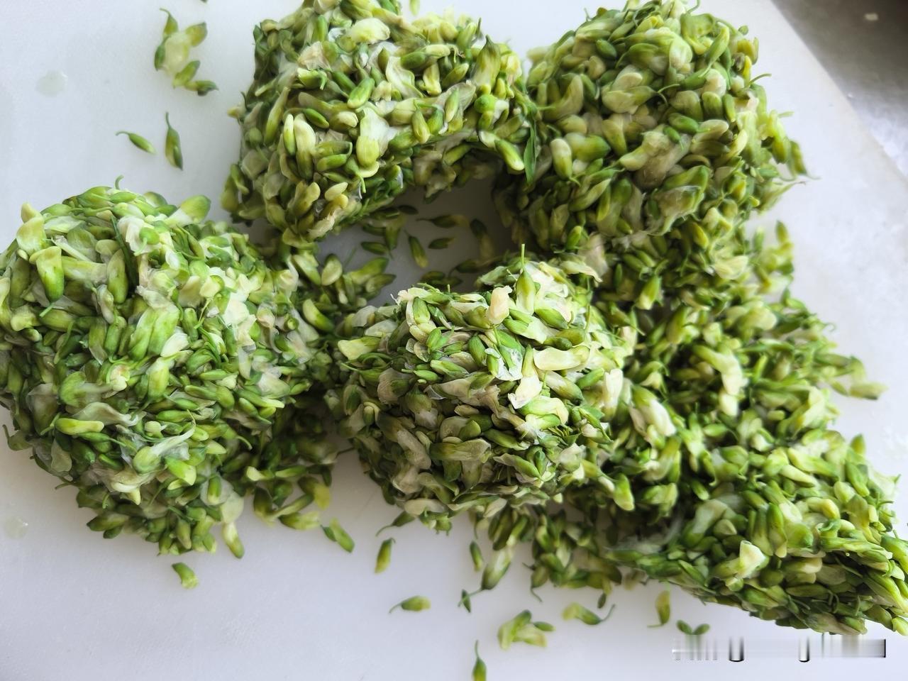 槐花饺子 自己采摘或菜市场买的槐花要先去杂,用水浸泡后再在沸水里烫一下,
