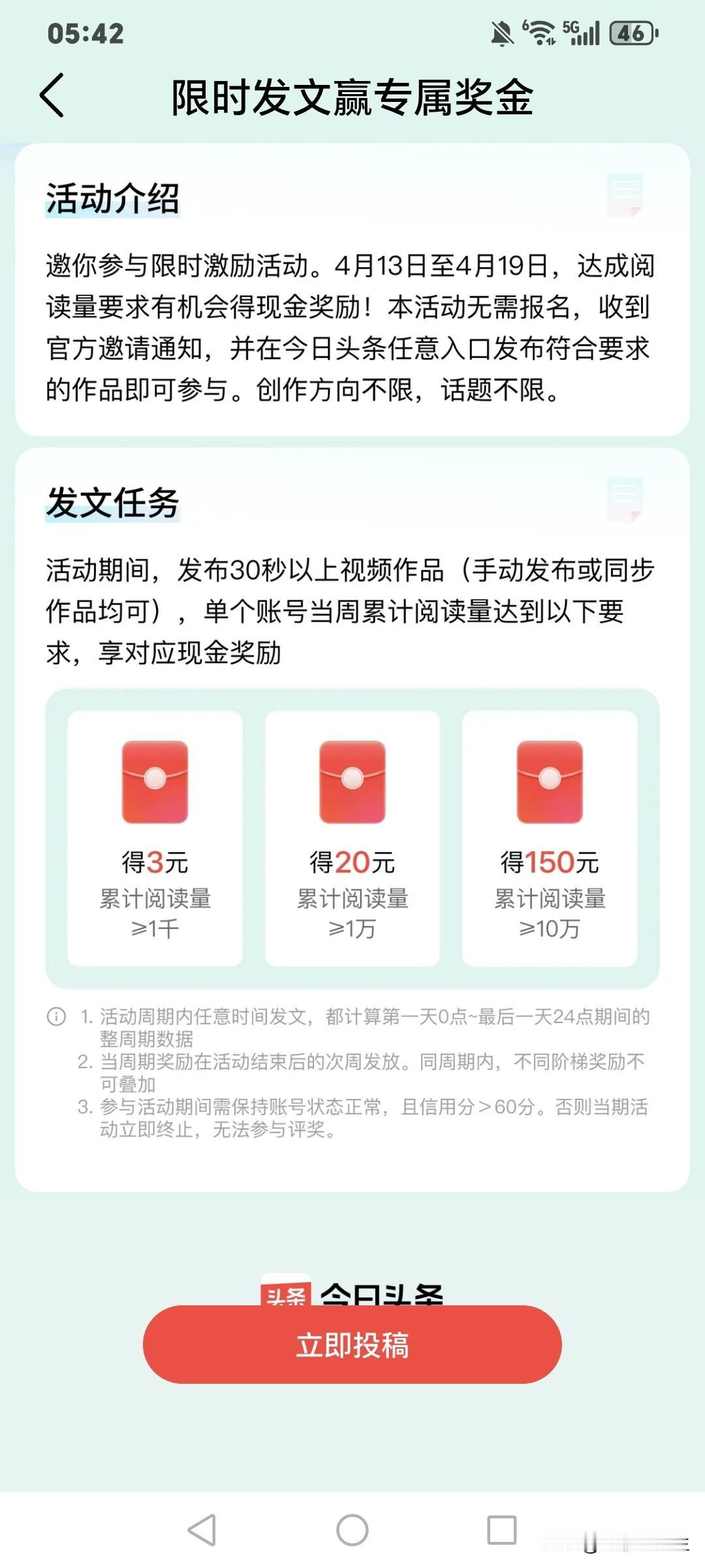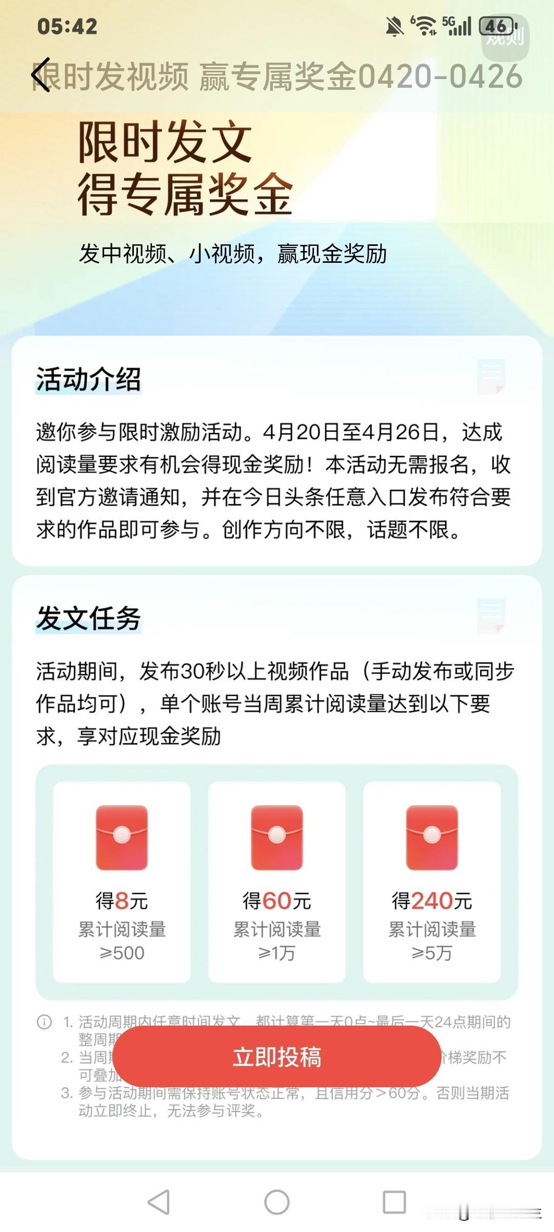 你发现没有,现在头条奔视频使劲了,你收到这个活动邀请了吗?原来头条扶持微头条和文章,有首发,有新锐领航创作者奖励,现在又加一个发视频给奖励,为啥开始扶持视频了?