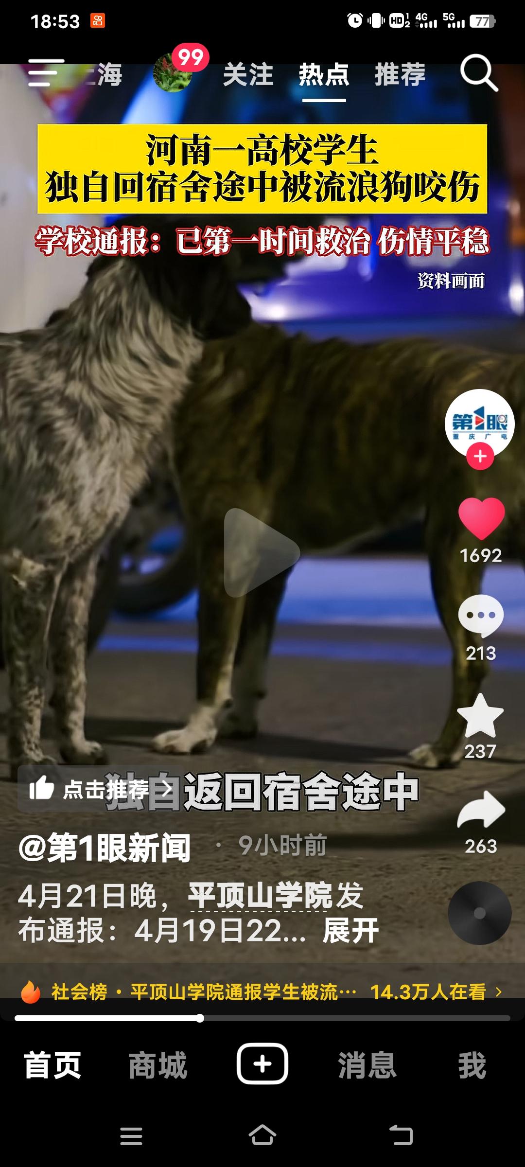 看到狗都觉得害怕!4月19日晚22时30分许,河南某高校学生高某某独自回宿舍时,被一群流浪狗咬伤,身上伤了20多处,看了都让人心疼呀!