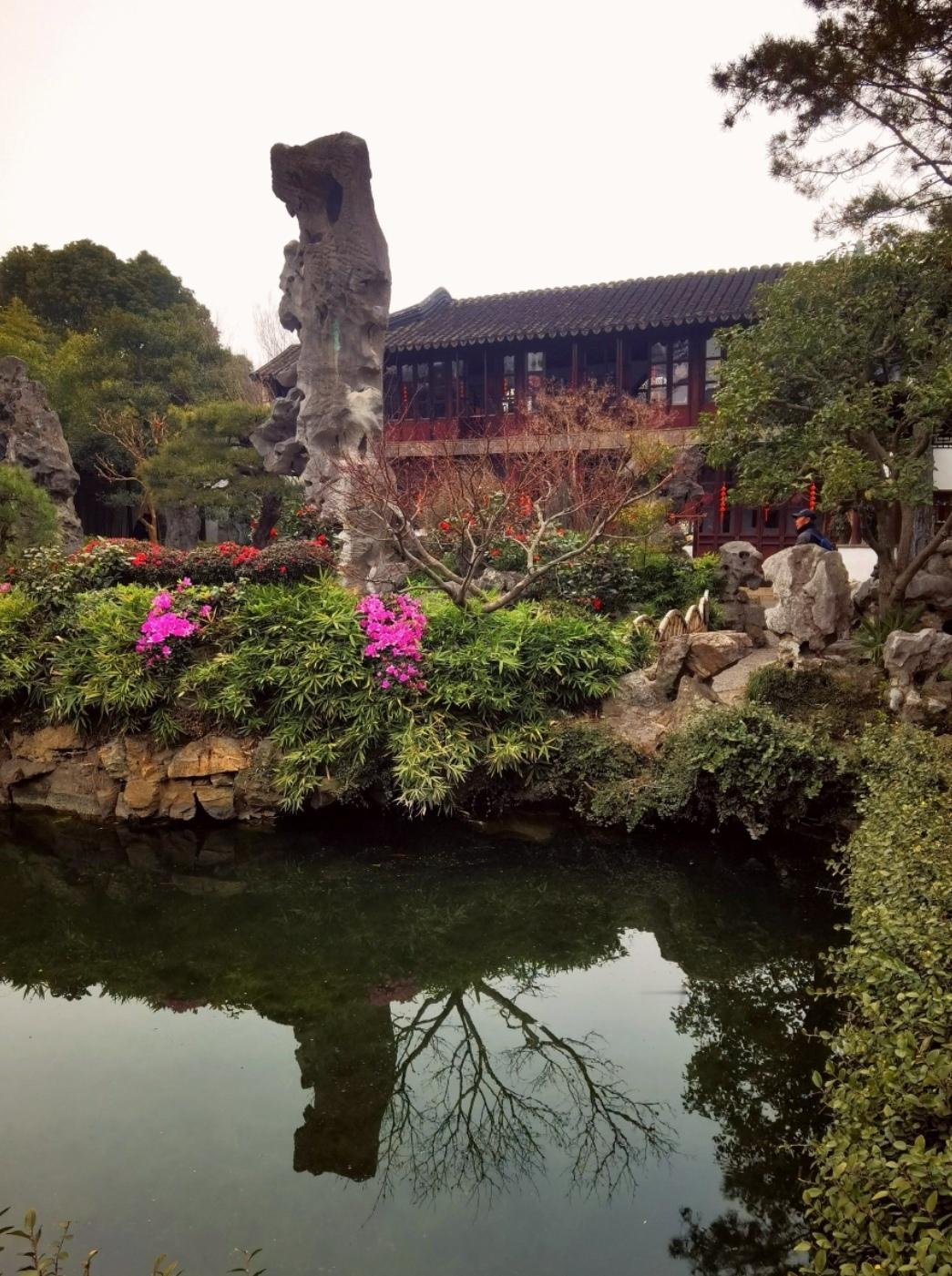 以曲廊分割景致,借漏窗收纳山色,咫尺方寸之间便营造出深远的层次感。池水清浅萦绕山石,亭台错落依附林木,冠云峰静立其间,凝尽山石风骨。