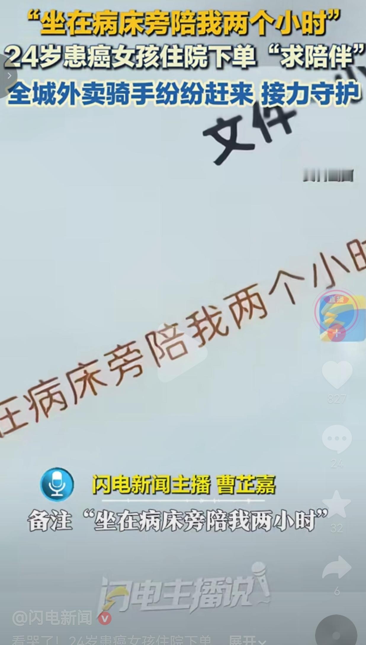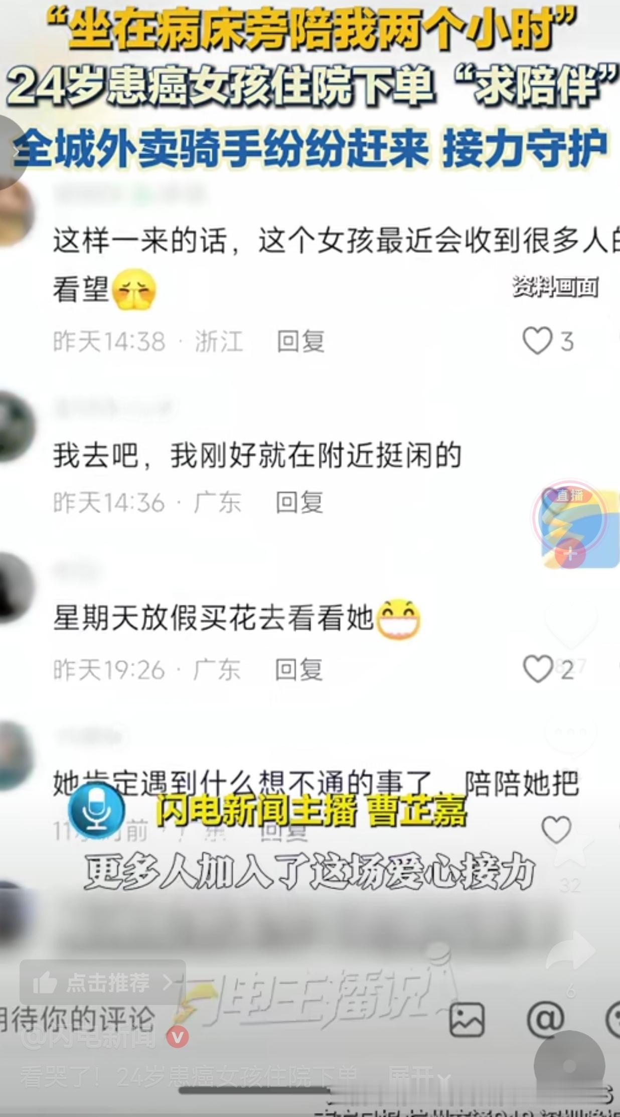 24岁患癌女孩下单求陪伴,外卖小哥接力守护暖哭全网。