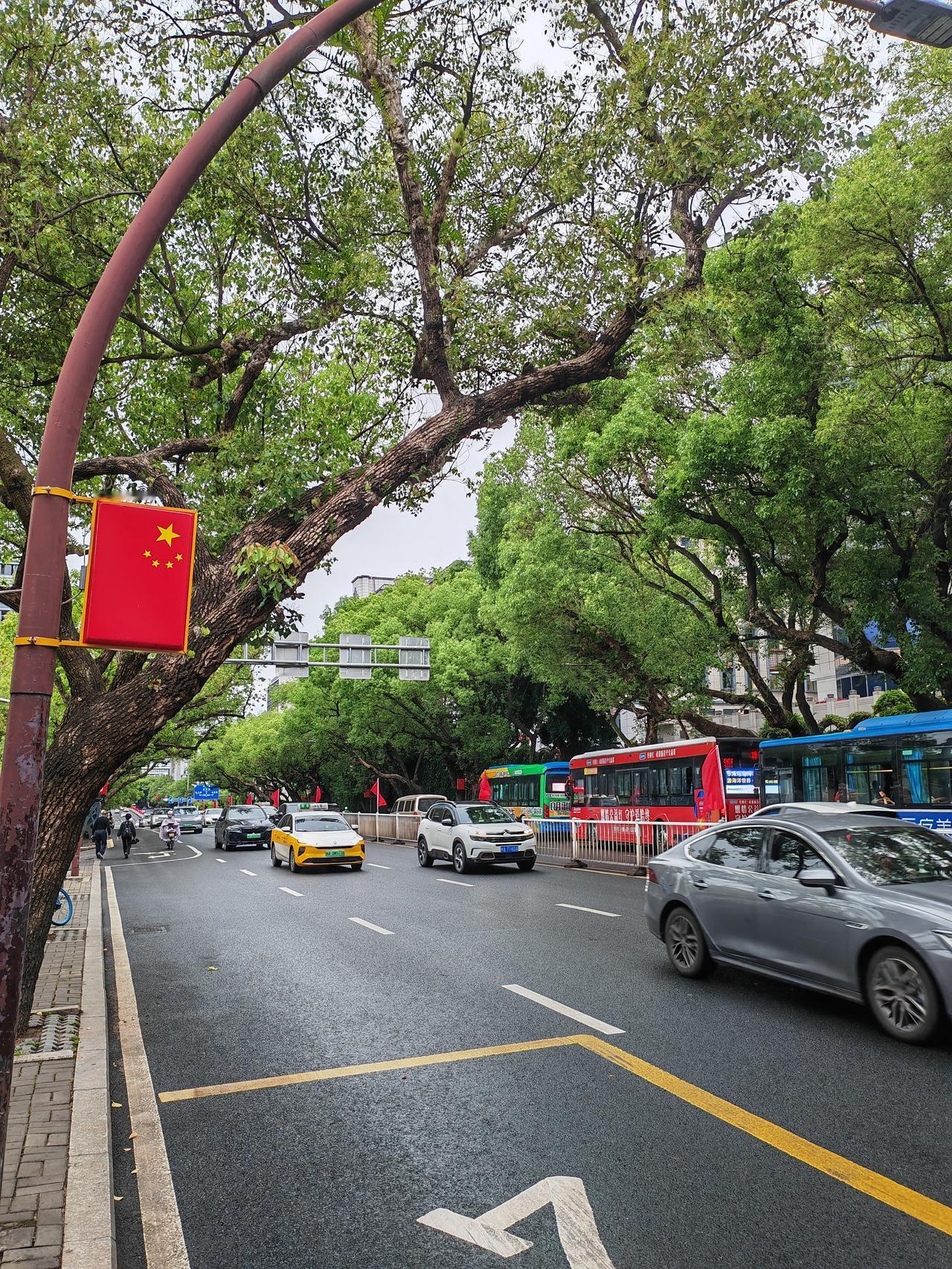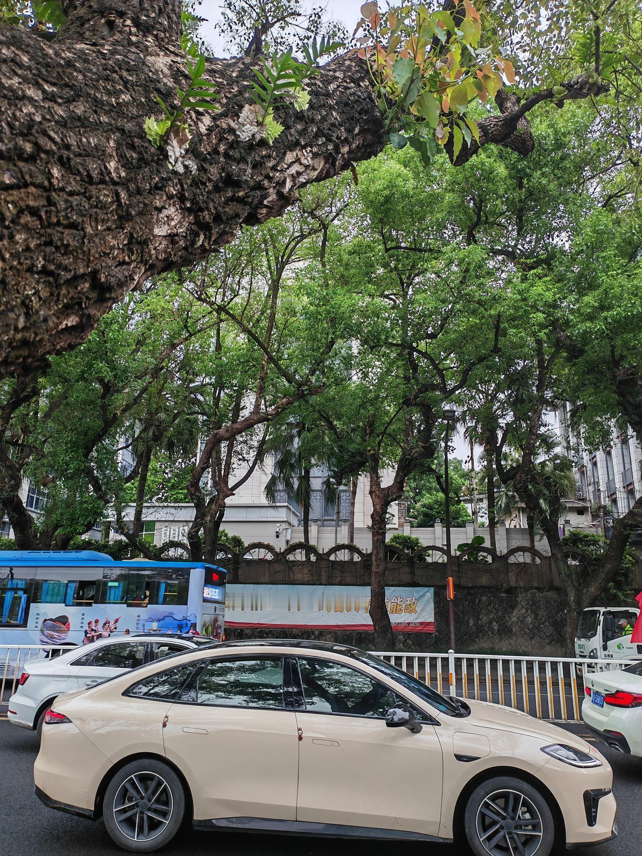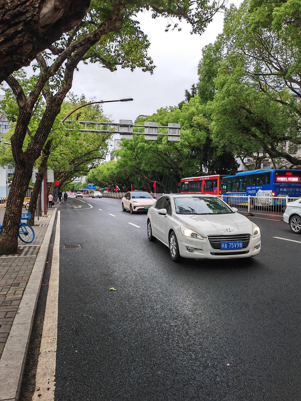 鼓屏路的阴天,加上两侧的绿植,别有一番氛围!