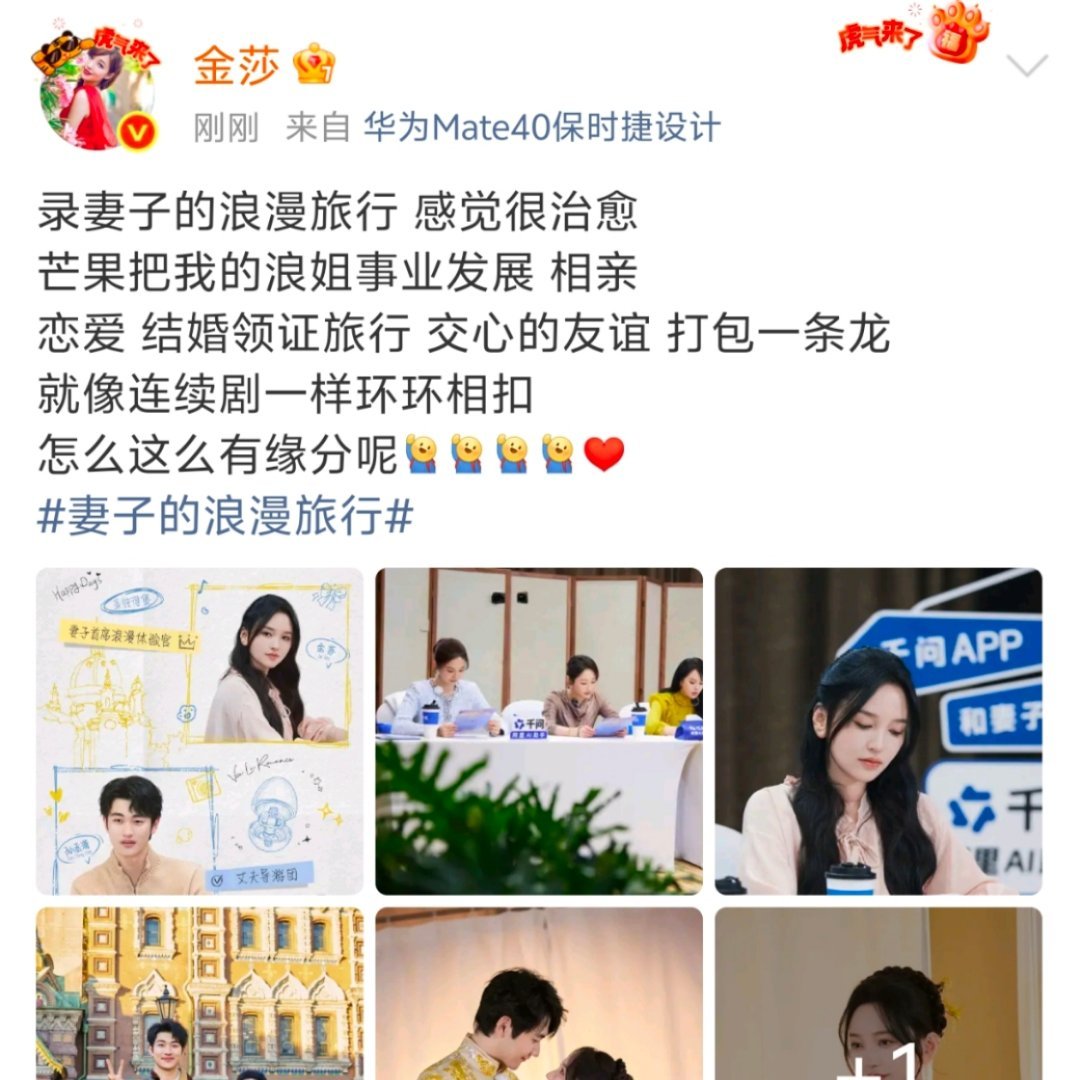 金莎说相亲恋爱结婚领证一条龙金莎说相亲恋爱结婚像连续剧 金莎发文:“我的浪姐事业发展 相亲恋爱 结婚领证旅行 交心的友谊 打包一条龙就像连续剧一样环环相”金莎孙丞潇备孕