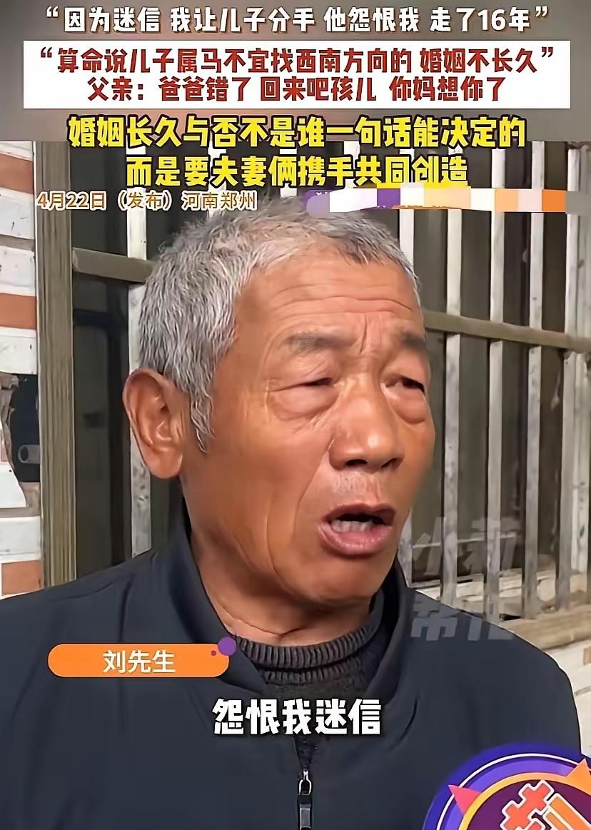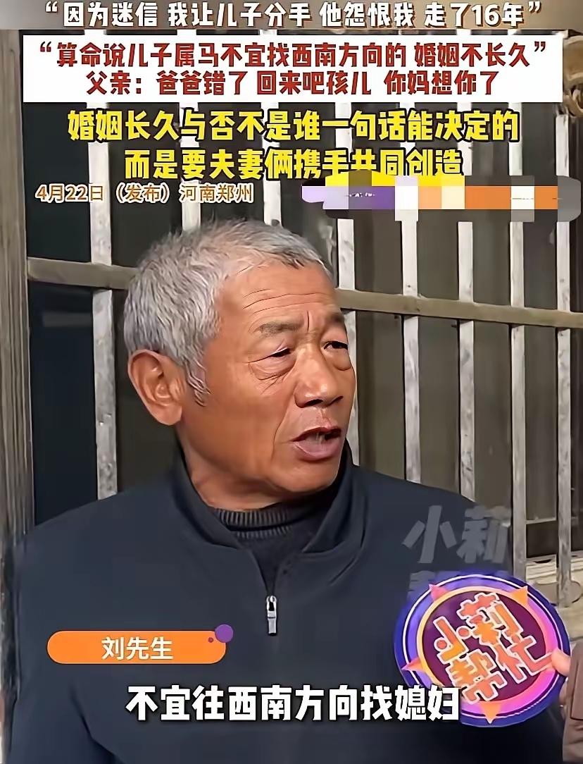 婚姻长久与否,从来不是谁一句话能决定的,可当年的一句迷信,硬生生把一个家拆成了两半,也让两代人,用16年的时光互相惩罚。