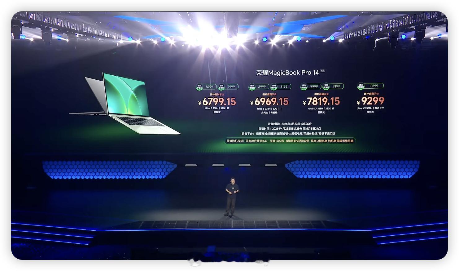 轻薄旗舰荣耀MagicBook Pro 142026 国补到手价6799.15元起,荣耀MagicBook Pro 16 国补到手价6969.15元起,现已全渠道开售。