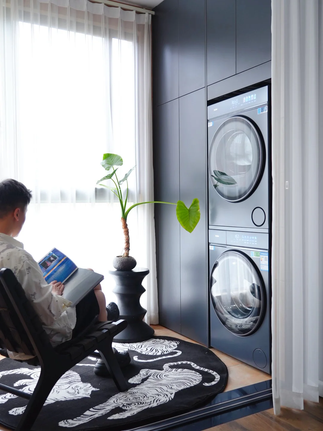 👔书房旁边还有个5平米的小阳台,不到一平米的空间,嵌入洗烘套装,现在洗衣不用看天气,晒衣服直接烘干,阳台清清爽爽的🍀