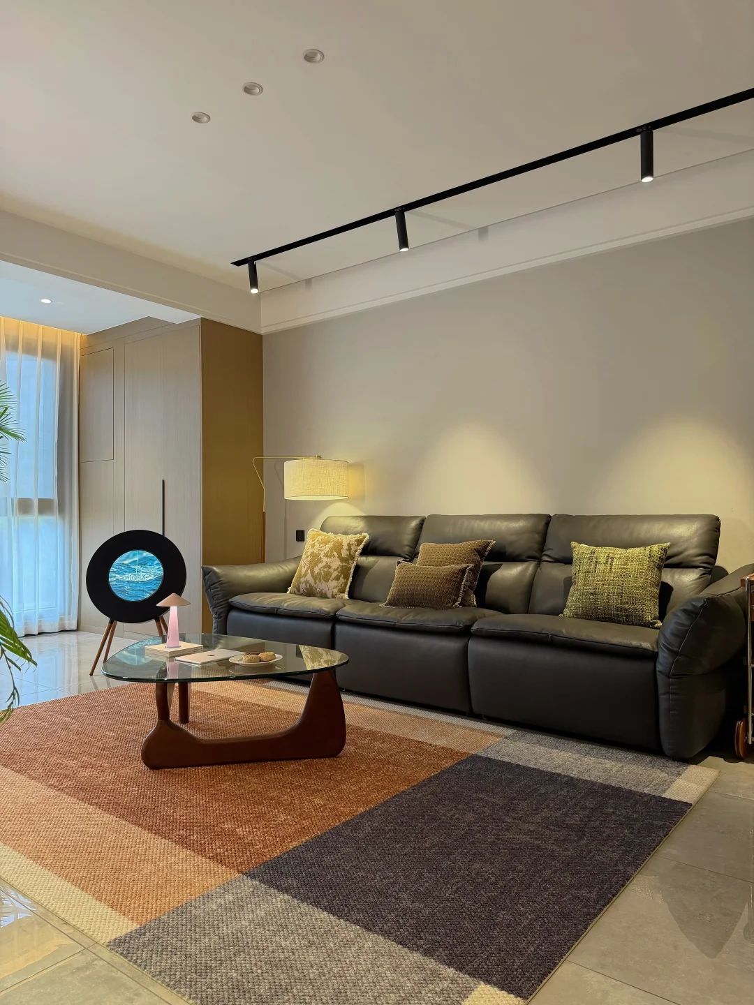 电视墙旁边做了扇玻璃推拉门