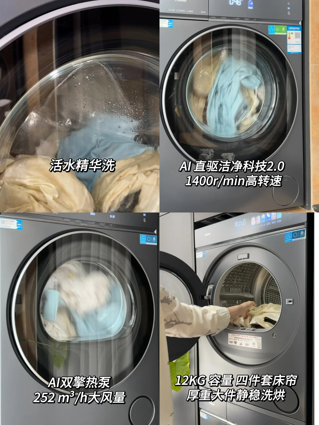 ✅它升级的AI直驱洁净科技2.0,1400r/min高转速,稳定性很好,哪怕四件套洗的又快又彻底,29分钟就能把四件套洗的干干净净。而且声音很轻,不会影响在一旁的书房阅读办公