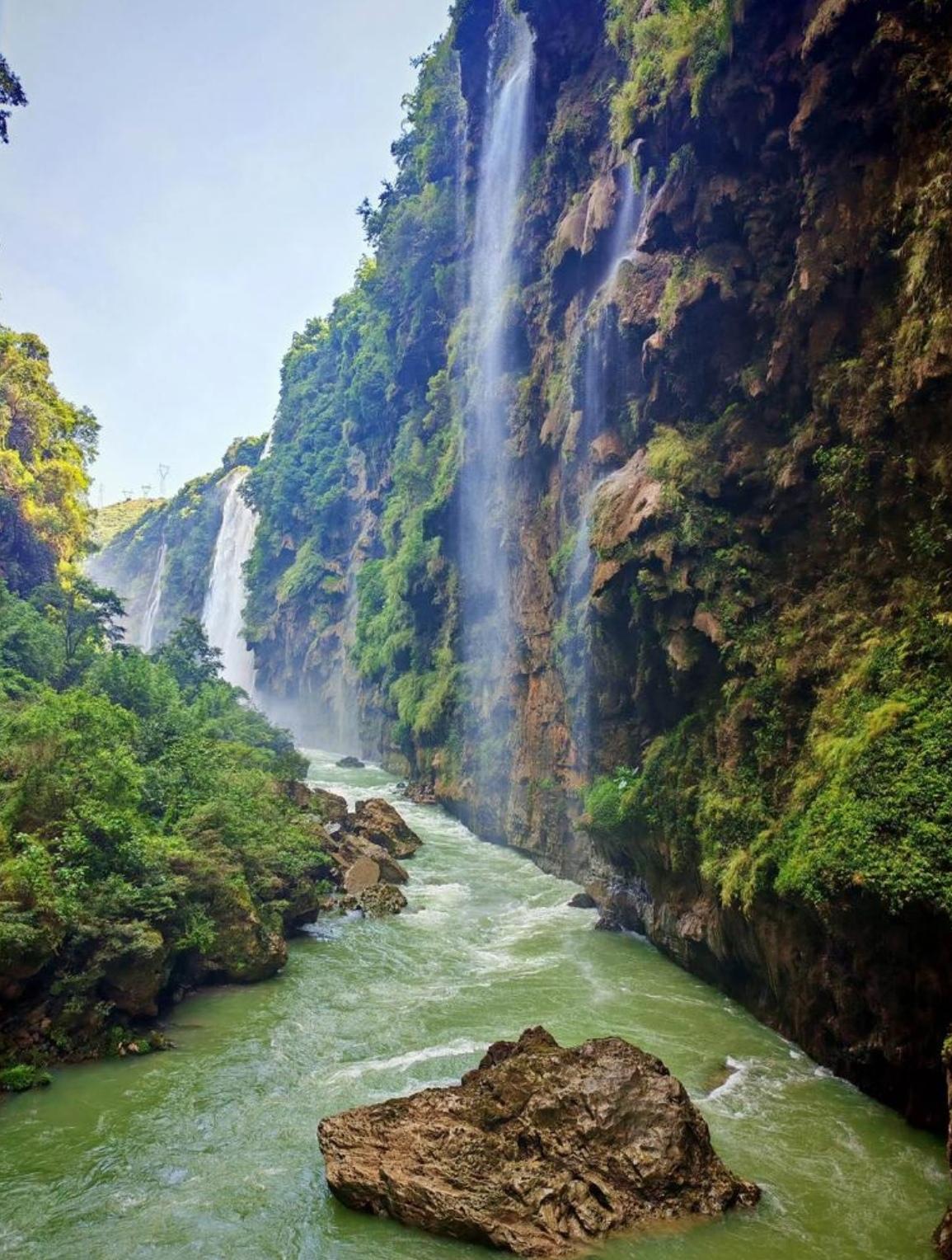 两岸钙化壁挂如天然浮雕,赭红黛绿交织,岁月沉淀出斑斓纹理。谷底碧水穿峡,栈道蜿蜒,抬头一线天光,低头激流奔涌。雄奇与灵秀共生,壮阔与温婉相融,一步一景皆为自然史诗。
