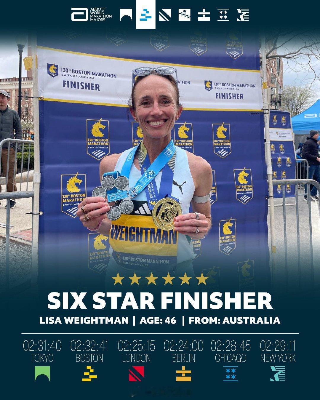2026波士顿马拉松中拿到六星奖牌的两位快速跑者。澳大利亚 Lisa Weigh