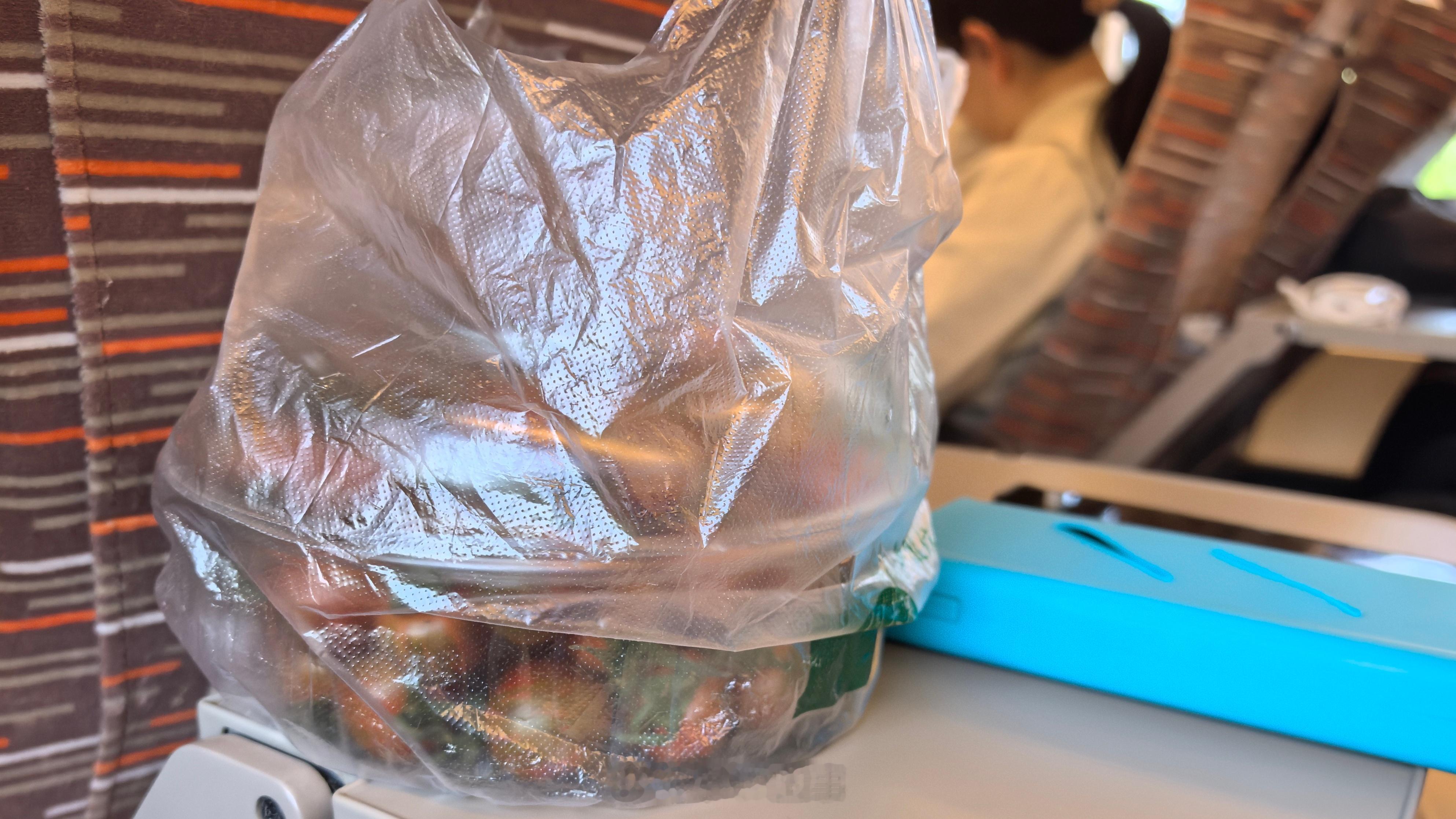 “您吃小西红柿吗?”阳光帅气的同乘小哥坐好后吃午餐水果,还不忘给咱让让。