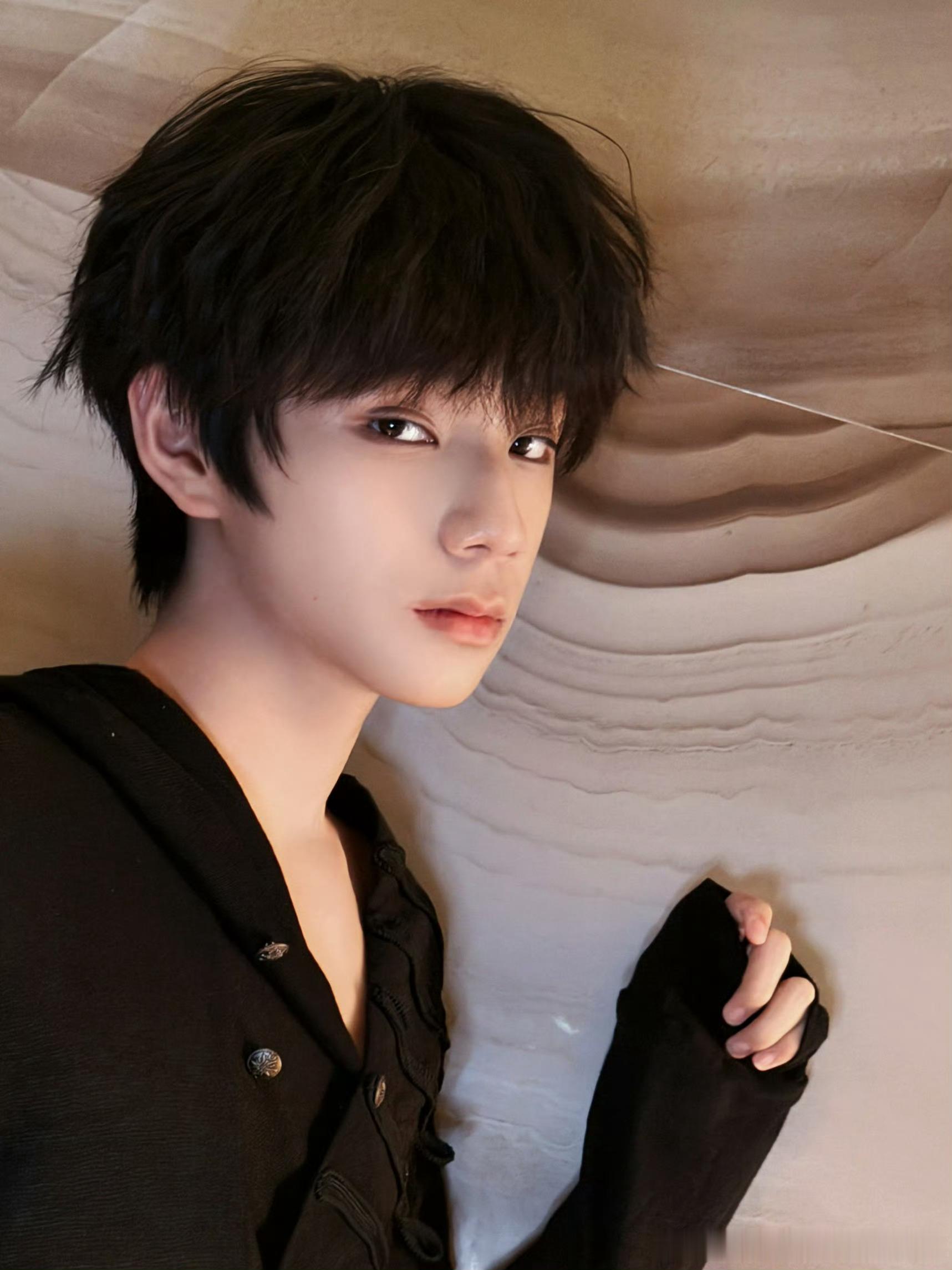 王橹杰晒黑衣库存 王橹杰晒了黑衣库存照,好帅的橹橹,照片多发爱看王橹杰