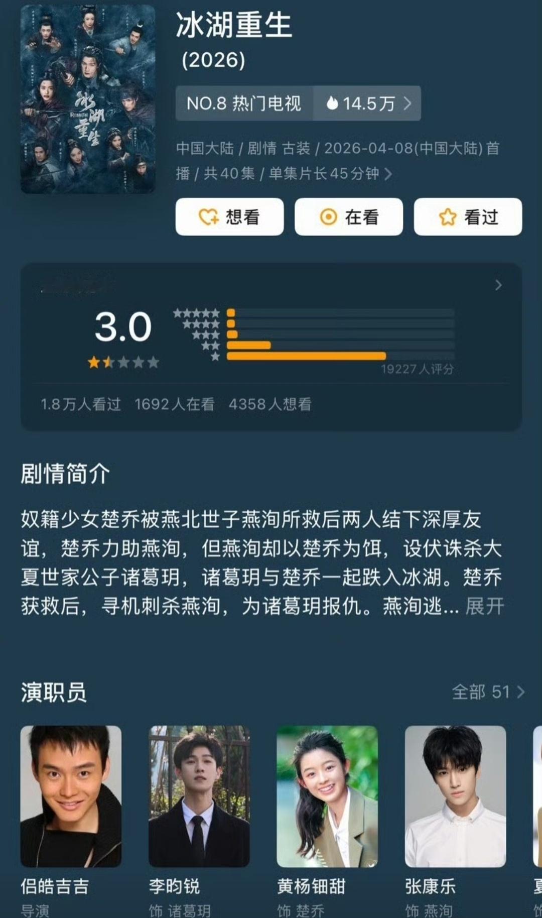 冰湖重生李昀锐新剧《冰湖重生》要超点放大结局了。感觉这些日子一点热度都没有,哪怕是现在要超点了,好像连热搜都上不了。知道这部剧怎么回事,剧里剧外,处处透露着冷淡。我本来以为有黄杨钿甜,热度和话题都会高一些呢,最起码讨论度应该不差。但是没想到会这样。
