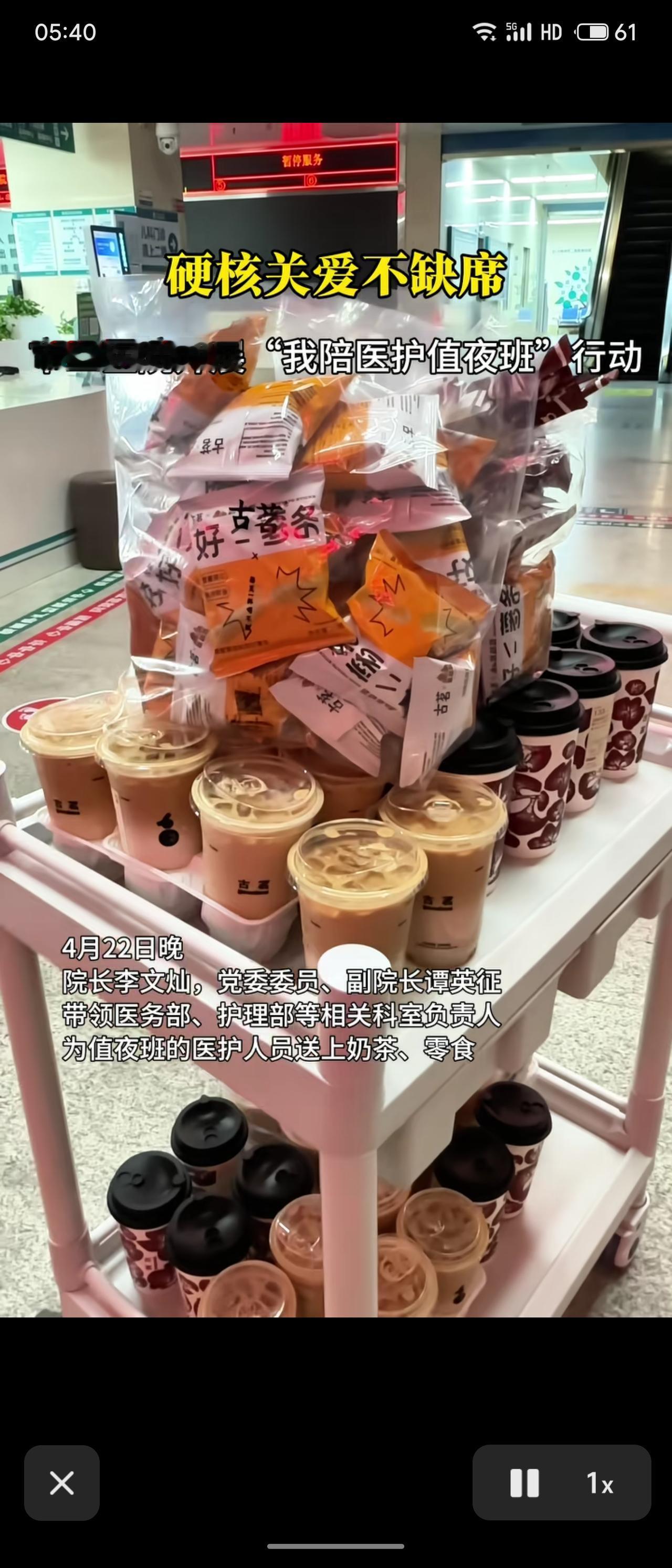 4月22日晚,株洲肿瘤医院院长、副院长带队开展“我陪医护值夜班”行动,为夜班医护送上奶茶零食,并详细了解轮休安排、危重病人救治及医疗安全,叮嘱科学排班、保障休息。此举硬核又暖心,让每一位坚守岗位的人都被看见、被珍惜,切实体现了医院对职工身心健康的真诚关怀。