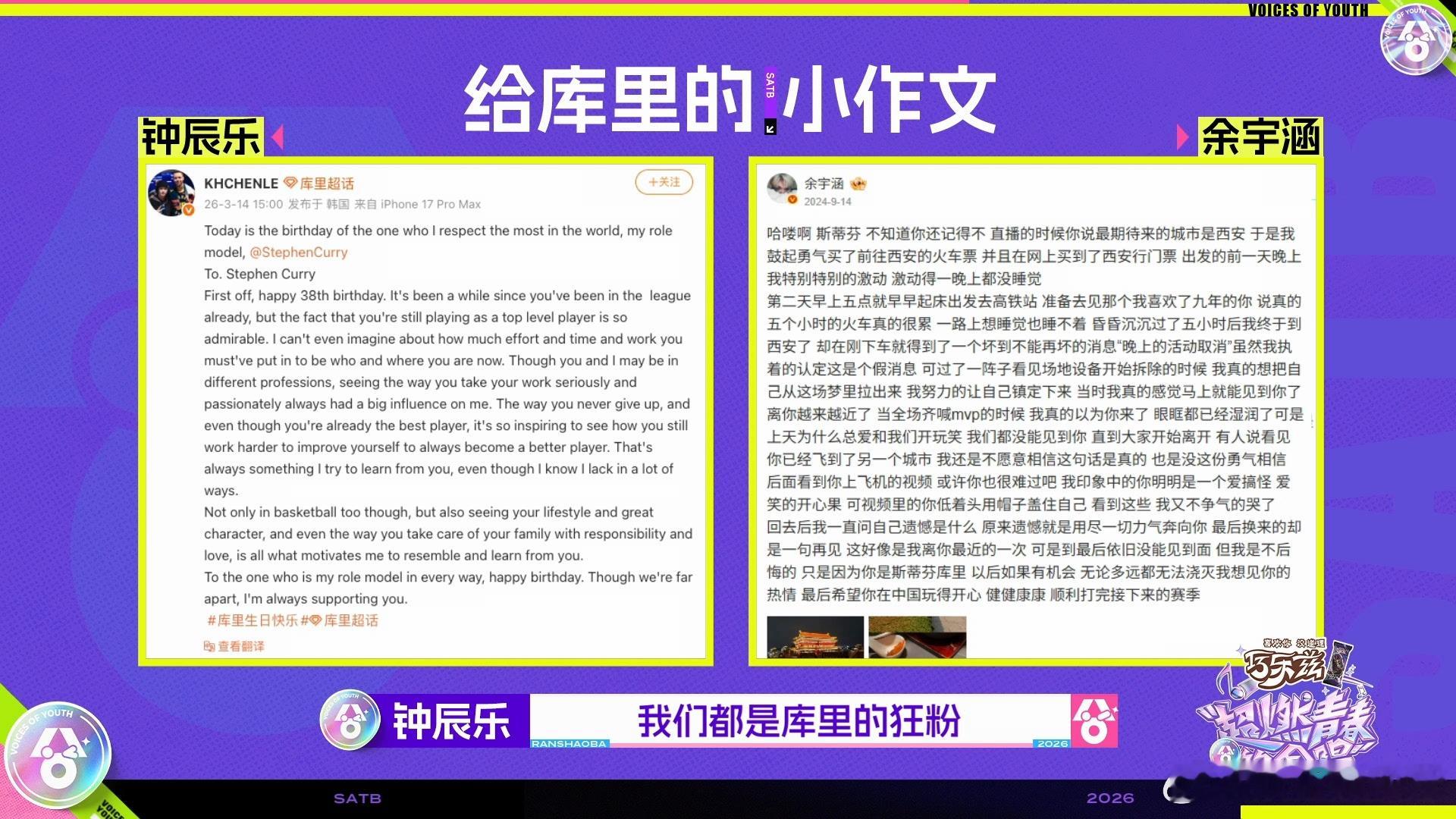 余宇涵钟辰乐同担相认谁懂这种同担快乐!余宇涵钟辰乐相遇后发现都是库里粉丝,热爱篮