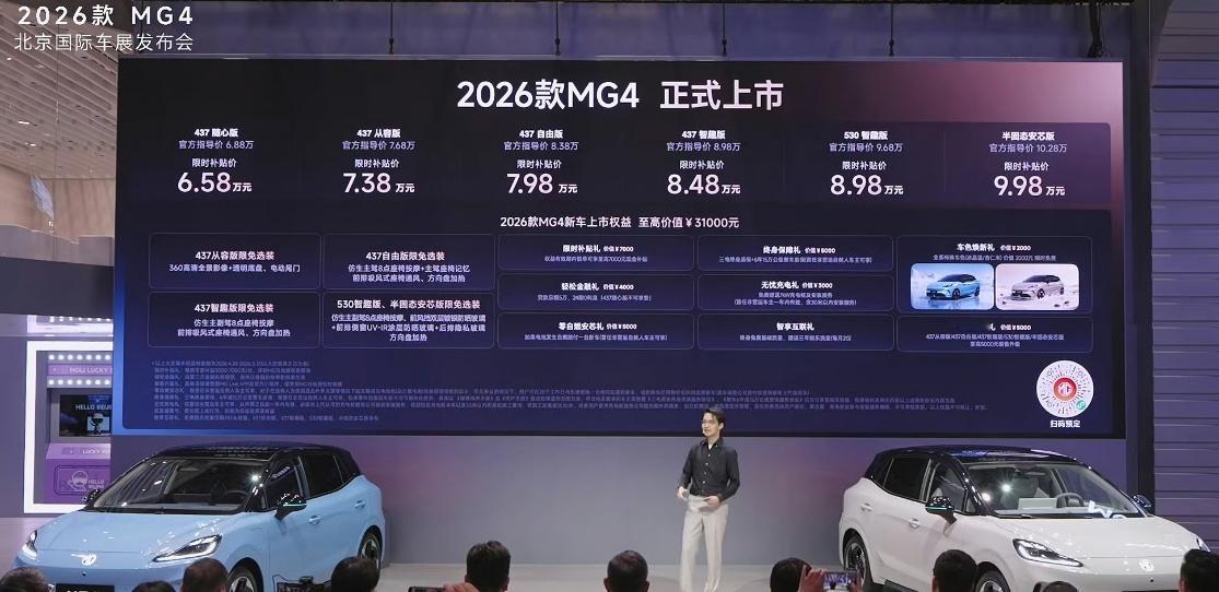 一图看懂2026款MG4的升级点,有一说一,限时补贴价格在6.58万元起确实很有诚意。另外,还有个彩蛋,5月份还有MG4X,定位在10万元左右的SUV,感觉可以期待一下!2026款MG4mg4改款MG4
