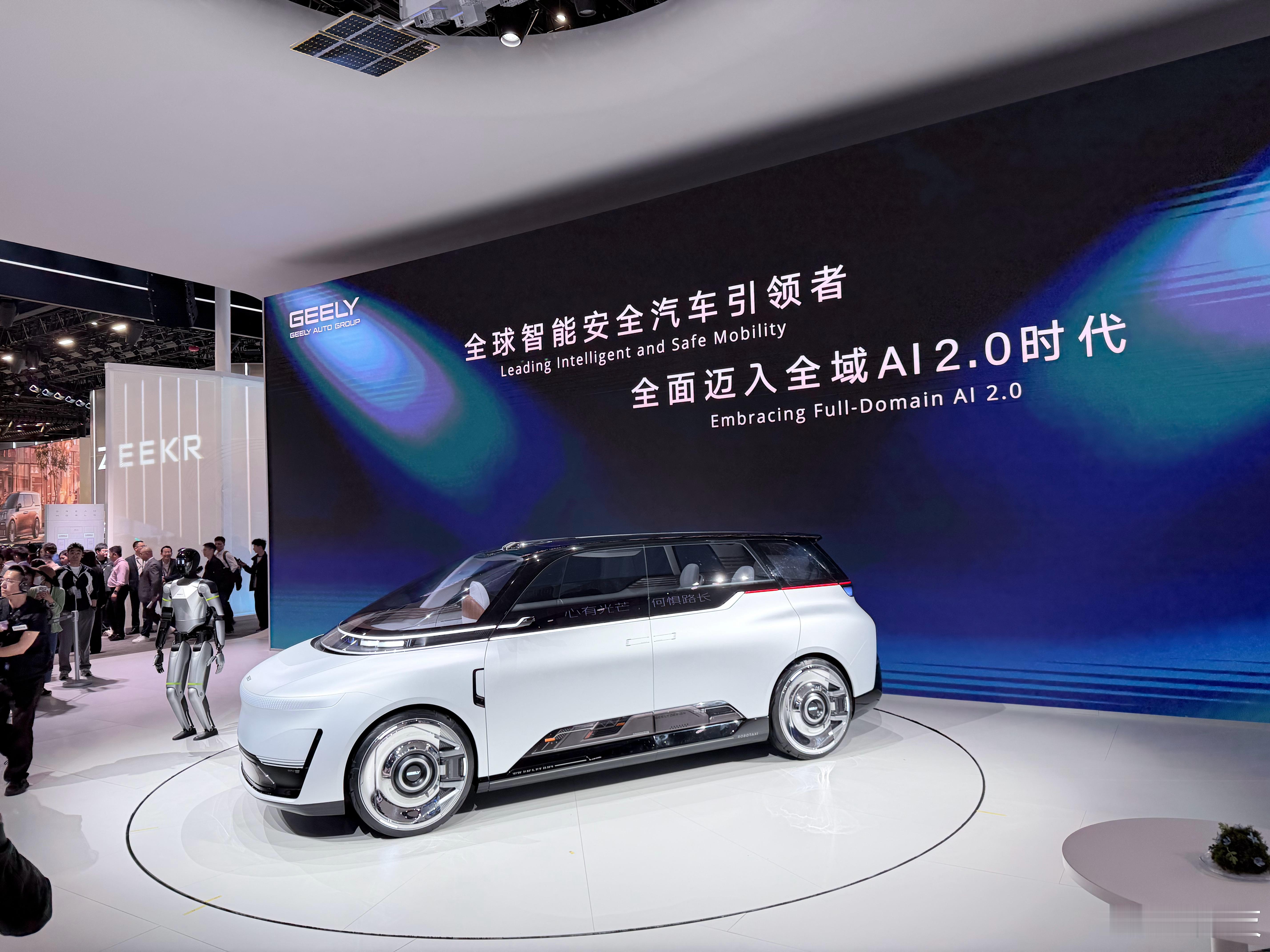 全面迈入全域AI 2.0时代,吉利汽车集团发布中国首款原生开发「Robotaxi」原型车Eva Cab你敢坐Robotaxi吗4月24日,吉利汽车集团在北京车展上正式发布中国首款原生开发「Robotaxi」原型车——Eva Cab,依托于全域AI 2.0技术体系、开放协同的创新生态和全球化发展蓝图,率先把新能源汽车推向具身智能的未来形态。同时,吉利汽车集团汇集了极氪、领克、吉利银河及吉利中国星全品牌矩阵,聚焦“一个吉利”,首次打造“科技生态展台”,以半包馆的形式,集中展出纯电、混动、甲醇、燃油等多能源全系产品,以及超级Eva、千里浩瀚G-ASD 4.0、智能蛋舱、新一代800V纯电生态、神盾金砖全固态电池等一系列全域AI 2.0时代的最新尖端成果,全方位展现“全球智能安全汽车引领者”的科技生态与未来图景。在造型设计上,Eva Cab采用“科技出行、美好生活”的理念,整体车态取意“天圆地方、容纳万象"的东方哲学,通过高门大户式的对开电滑门和对向式的座舱布局,象征着从“以驾驶位为中心”到“以乘员空间为中心”的转变,实现了高级审美与极致空间的完美融合。同时,Eva Cab将激光雷达、传感器等核心硬件,清晰呈现在前脸与车身的智能集成区,为用户带来看得见、摸得着的安全守护;其座舱内,通过银河天幕、星河泛舟门板、兰亭曲水扶手等细节设计,也为未来出行注入美好生活的温度。在感知硬件方面,Eva Cab还将搭载全球首个“2160线数字化激光雷达”,作为全球首款可量产的“千线级”超长距数字化激光雷达,可拥有每秒2592万点的超高成像能力,最远探测距离达600米,看得更远、看得更清、看得更准。此外,Eva Cab还将搭载行业最先实现量产的L4级自动驾驶软件方案——“千里浩瀚G-ASD L4”版本,能在公开道路上实现无人接驳,满足酒店接送、机场接送、公务出行等场景的需求。随着千里浩瀚G-ASD L4与超级Eva的持续迭代与深度融合,未来的Eva Cab,将成为真正意义上“能感知、能思考、能决策、能执行”的出行机器人。从全域AI 2.0技术体系布局,到中国首款原生开发「Robotaxi」原型车Eva Cab落地,从技术研发到生态闭环,吉利全面展现出完整且领先的AI科技创新能力、AI生态融合能力和AI体验普及能力,彰显了“全球智能安全汽车引领者”的强大体系力和深厚底蕴。