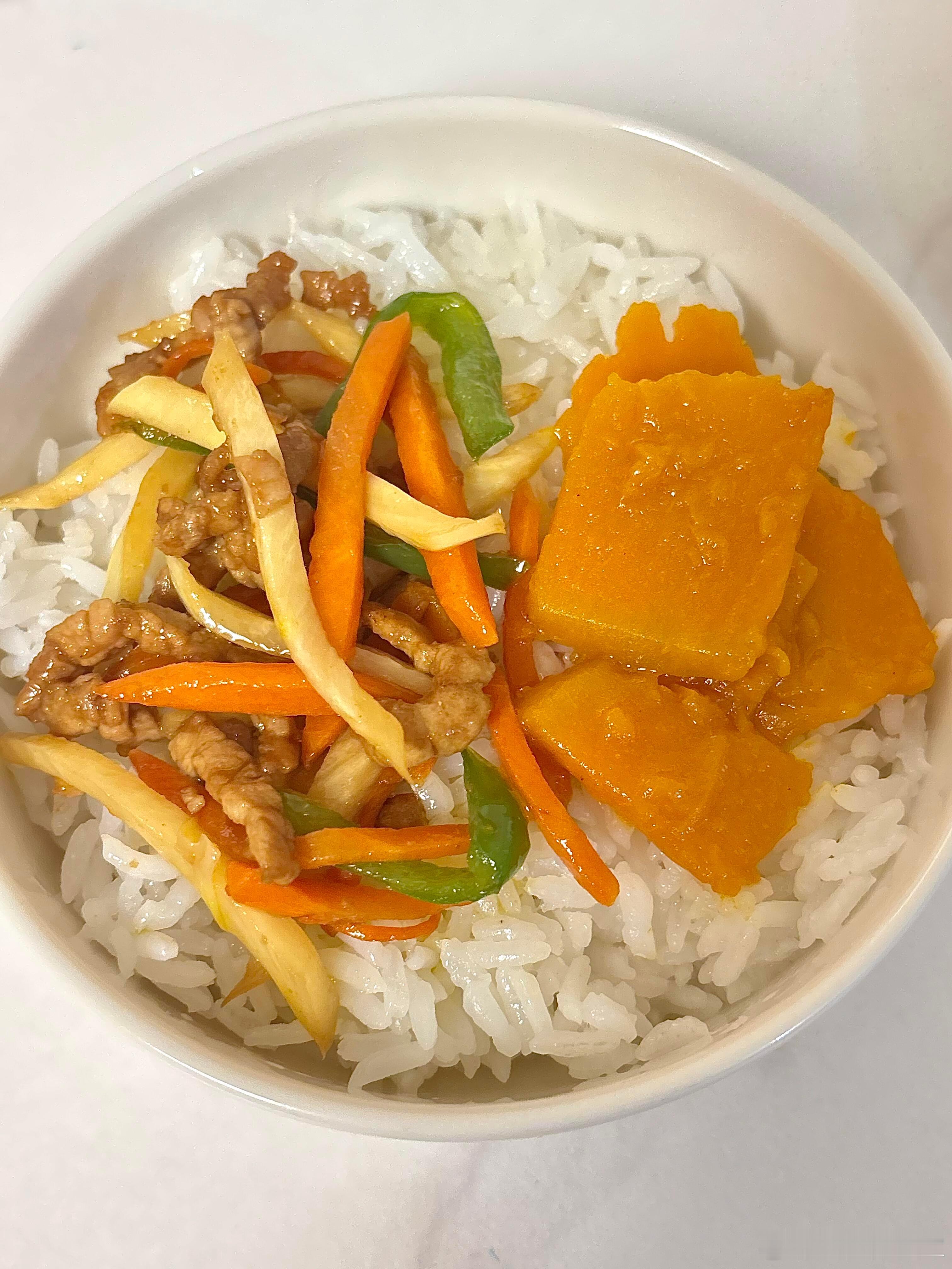 我和老娘的晚饭,中午炒的菜一动没动,晚上热了热还是没动……虽然简简单单,但吃